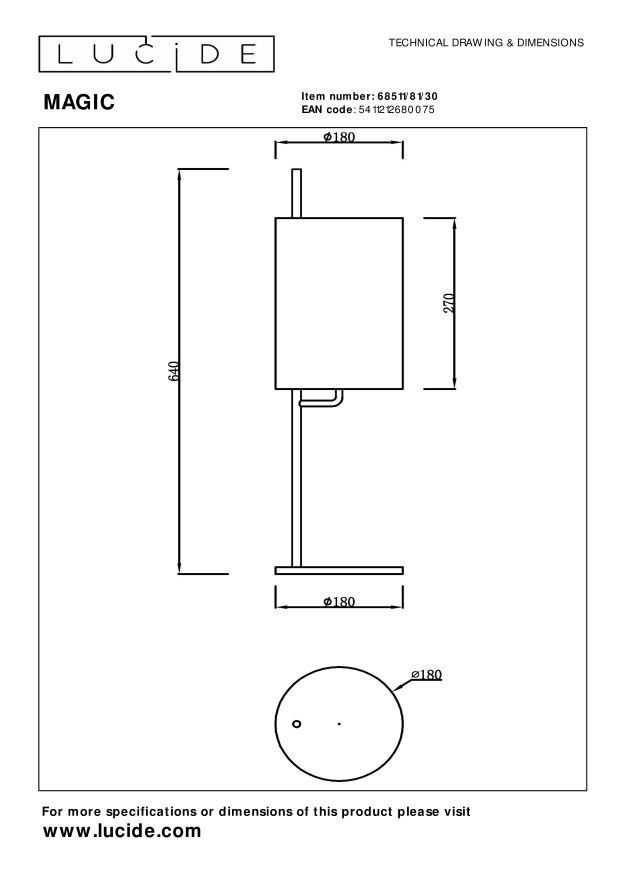 Spécifications Lucide MAGIC - Lampe de table - Ø 18 cm - 1xE27 - Noir :