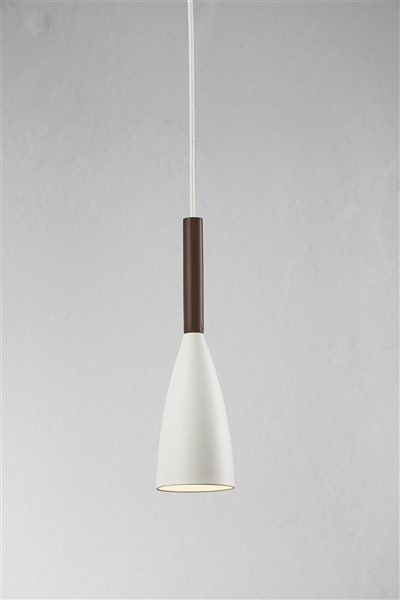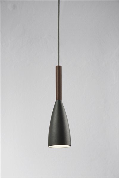 Ce luminaire suspendu design noir, blanc ou gris conique E27 355mm est une belle lampe conique.Le dessus est fini avec du noyer huilé.