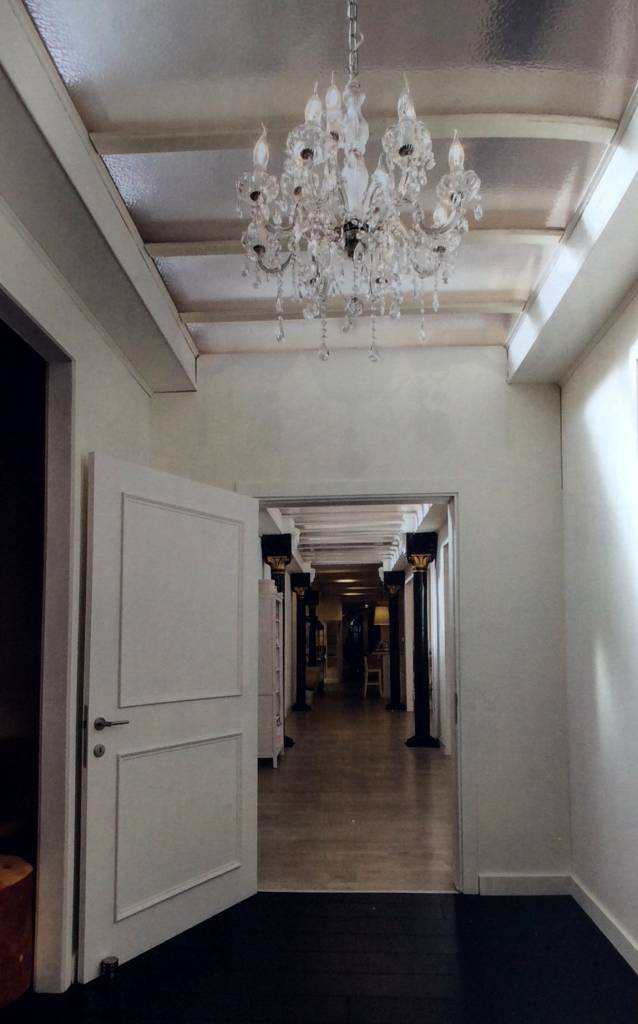 En dessous, il y a différentes perles qui oscillent d'un bras vers l'autre. En dessous, il y a des petits cristaux attachés. Ce lustre en verre se présente parfaitement dans un intérieur baroque, un bureau, un living mais il est également souvent utilisé dans les hôtels et restaurants.