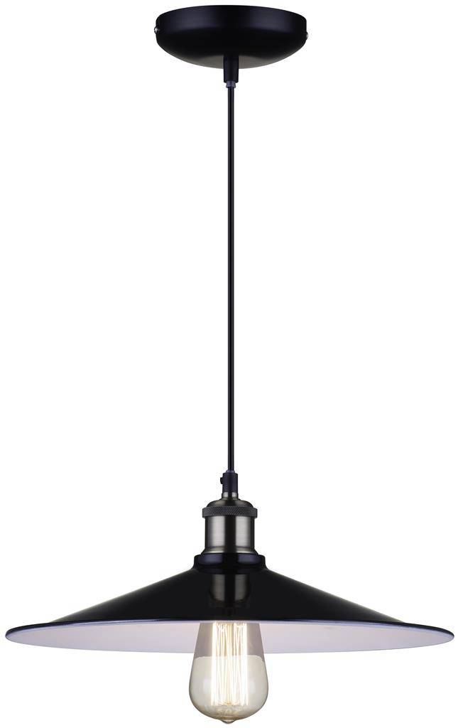 Ce lustre est un vrai luminaire suspendu vintage et est disponible avec un abat-jour noir avec une partie inférieure blanche.