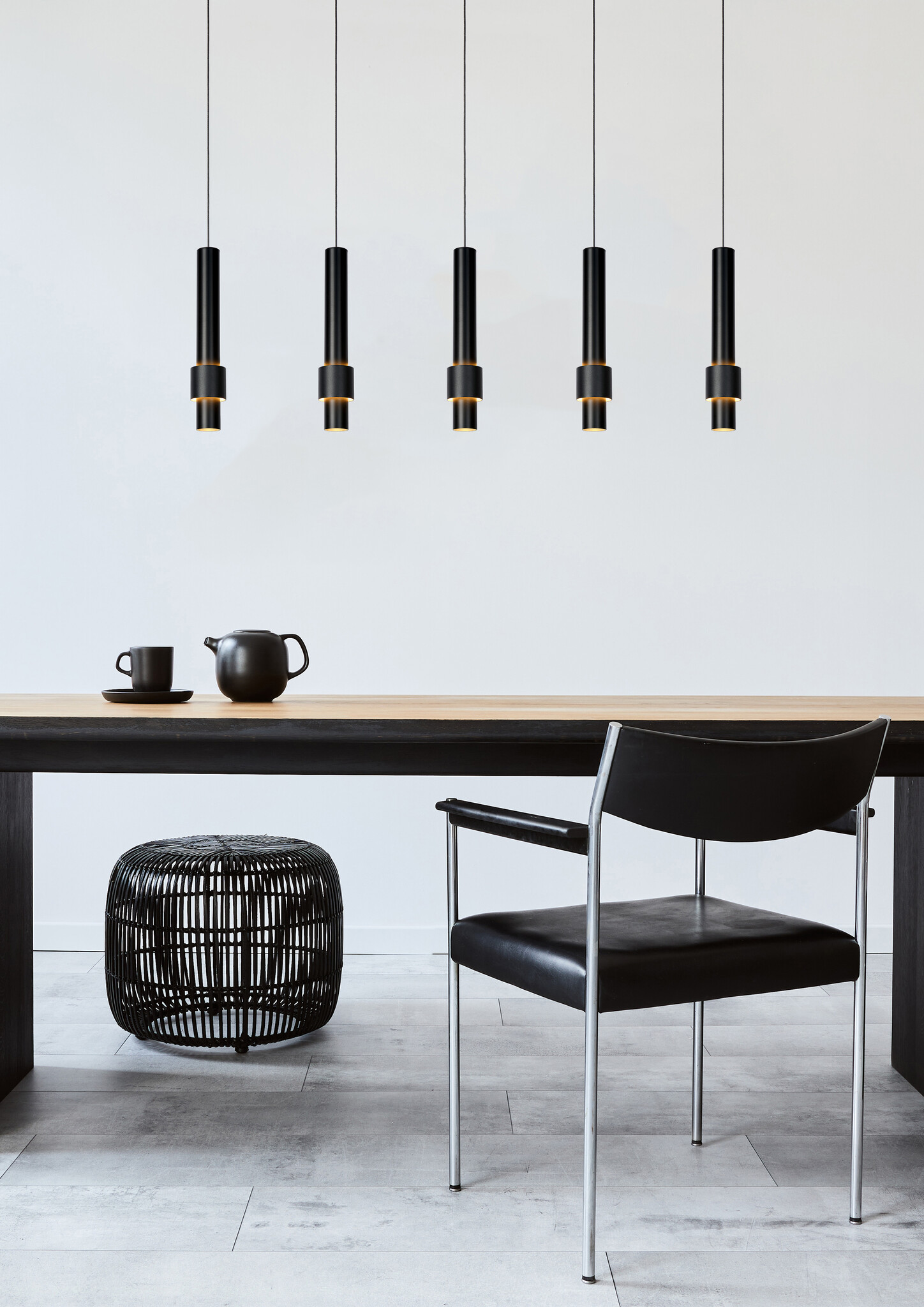 Spécifications Lampe suspendue longue noire Margriet LED dimmable 5x4,2W 2700K comprenant :