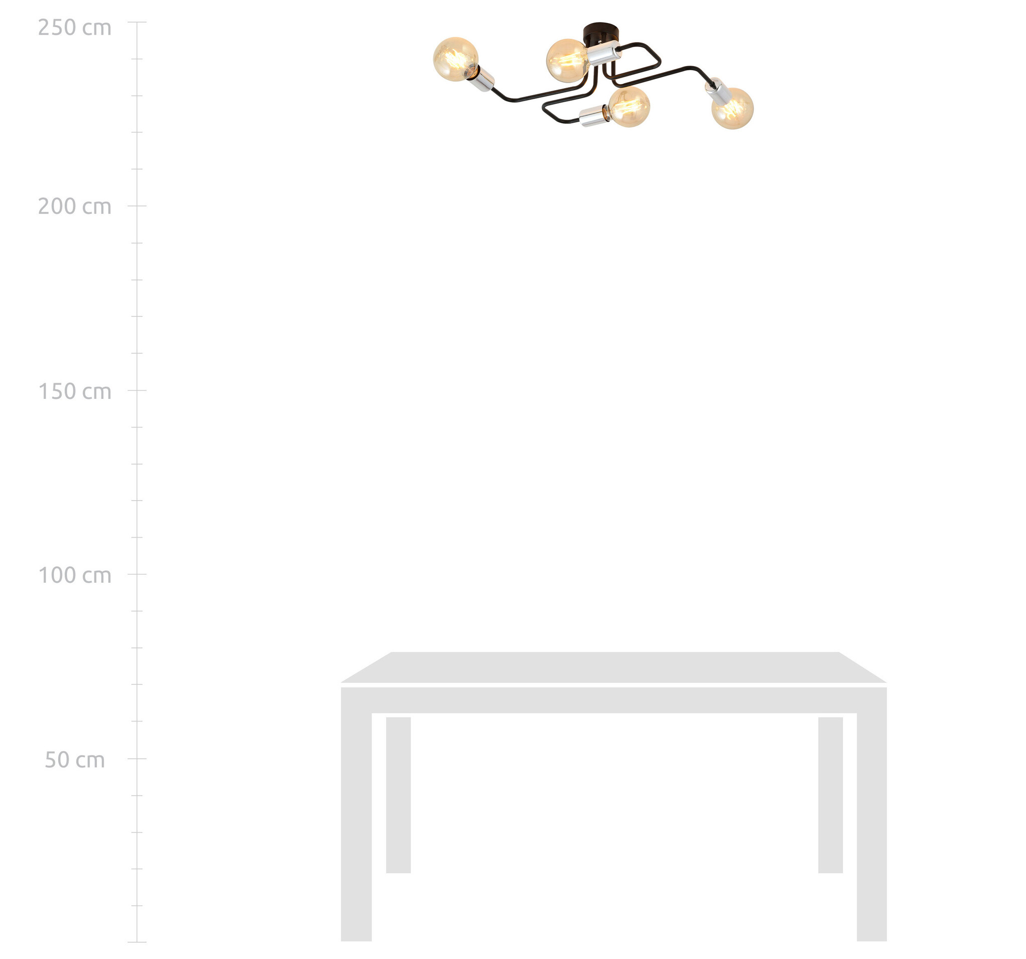 SpécificationsPlafonnier 4 lampes noir avec connecteurs E27 argentés :