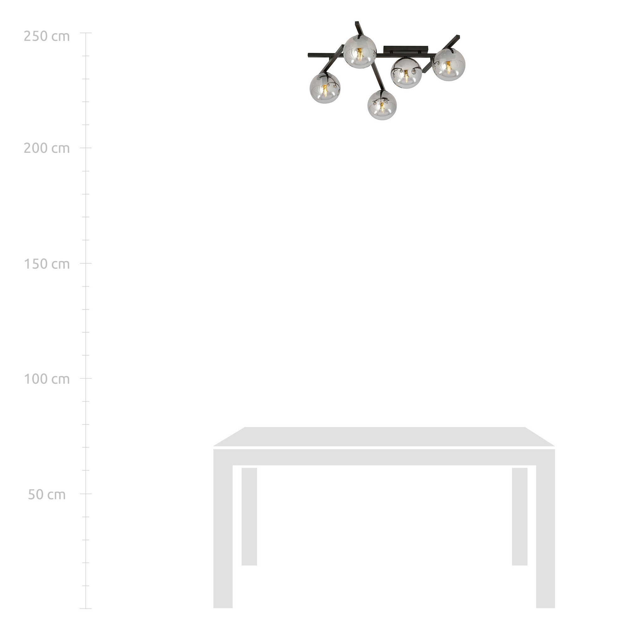 Spécifications Plafonnier à 5 ampoules fumées E14 :