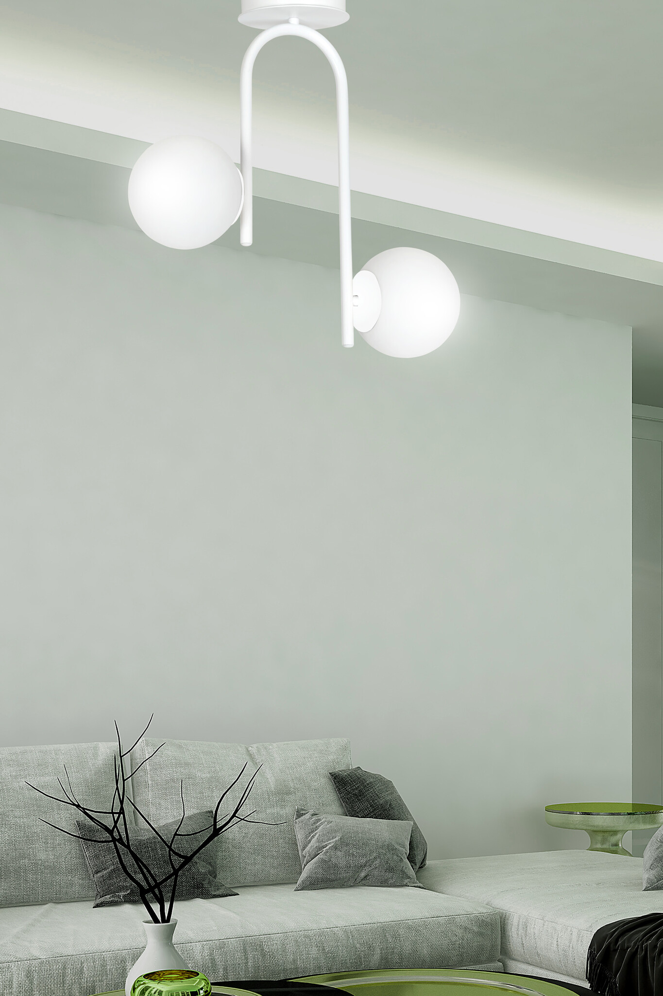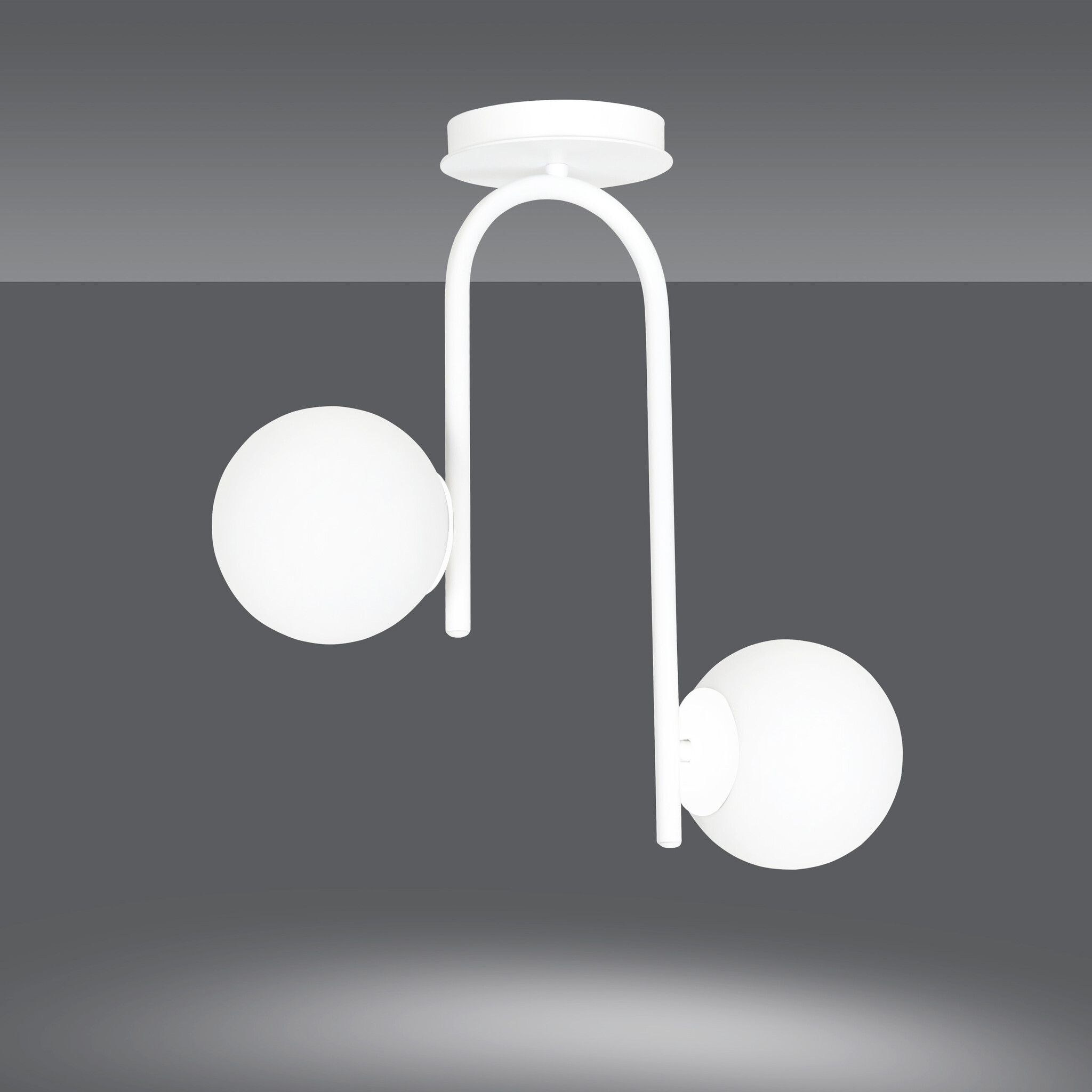 Plafonnier blanc courbé Helsinki avec 2 ampoules blanches en verre E14