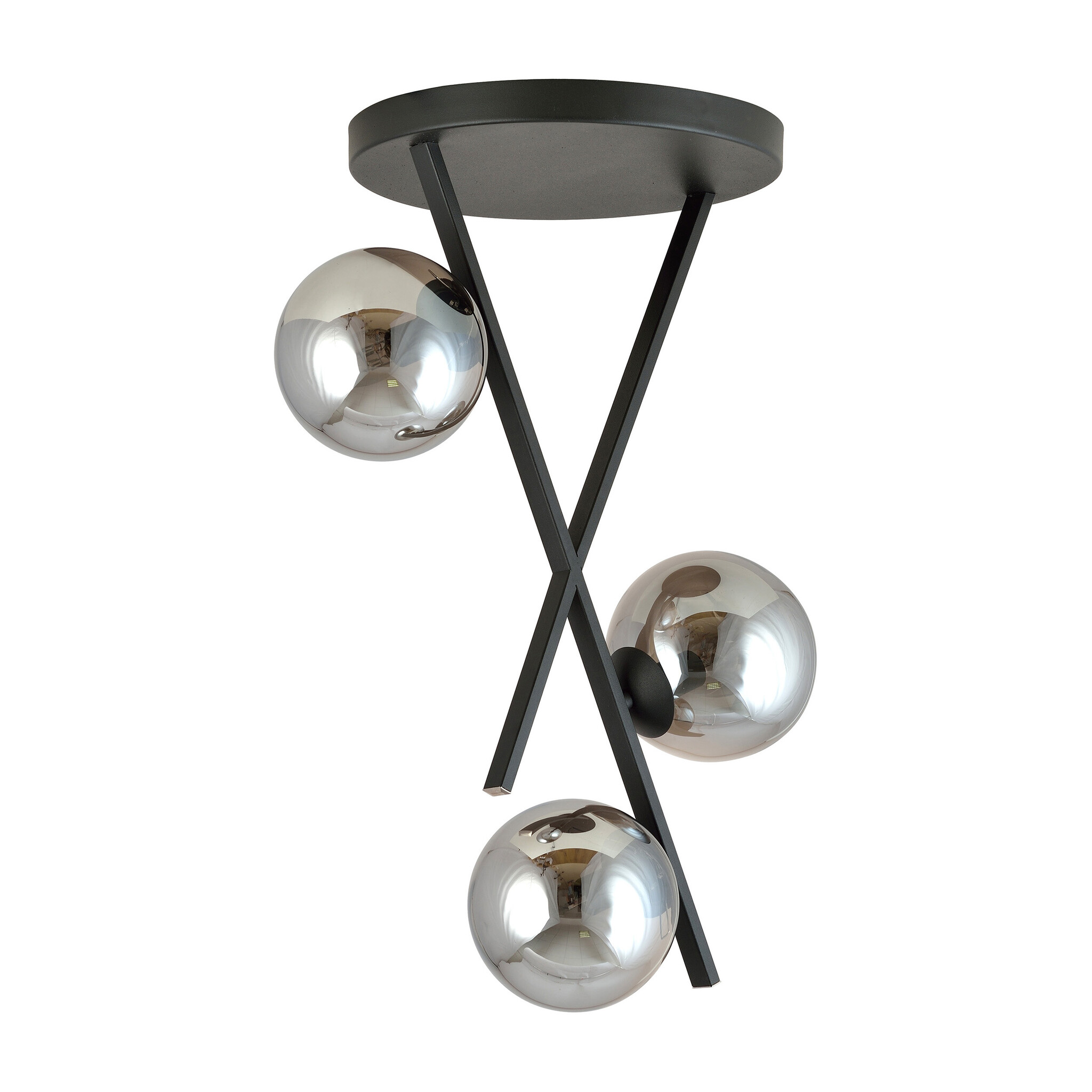 Spécifications plafonnier design noir avec tiges et 3 boules en verre fumé E14 :