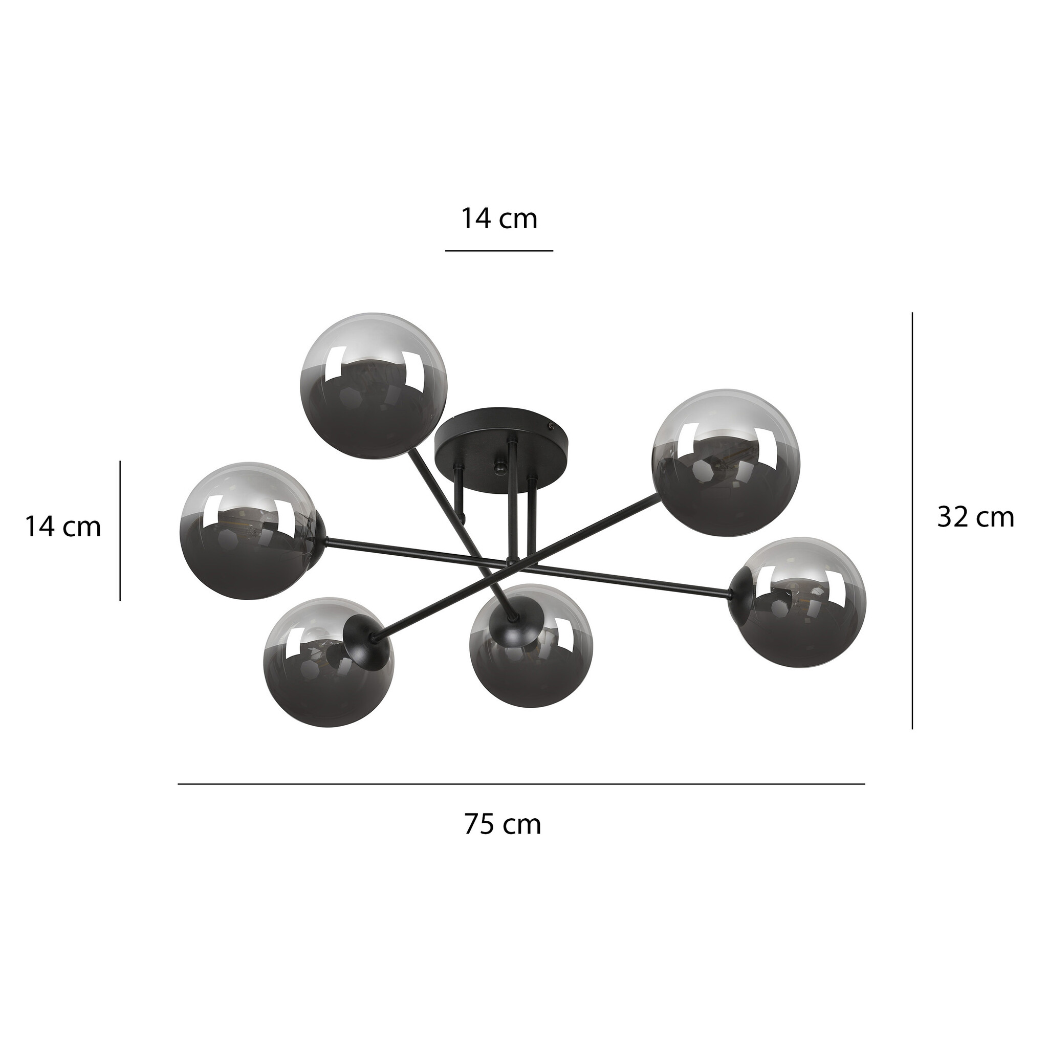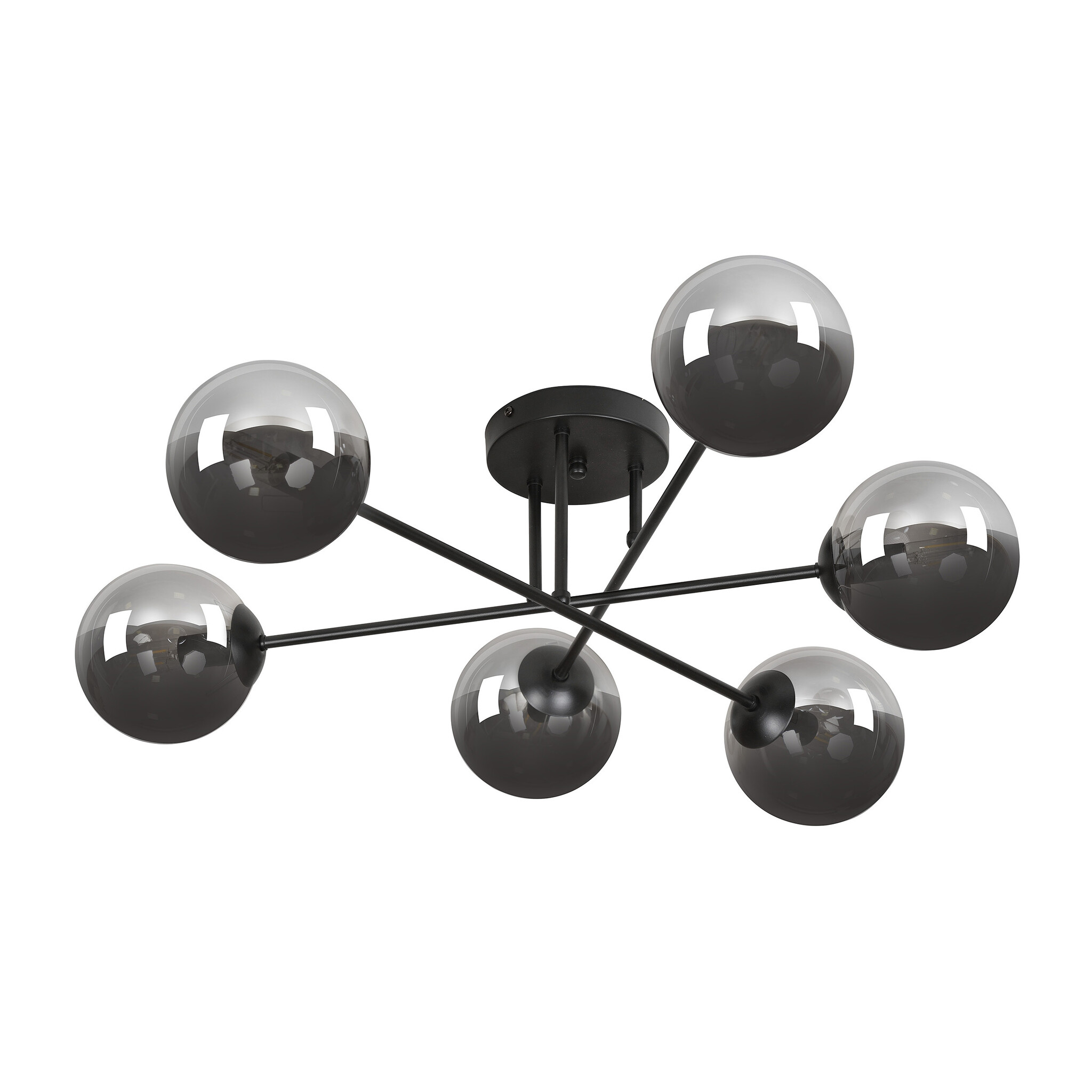 Plafonnier Kangasala rond ludique 6L noir avec ampoules verre fumé E14