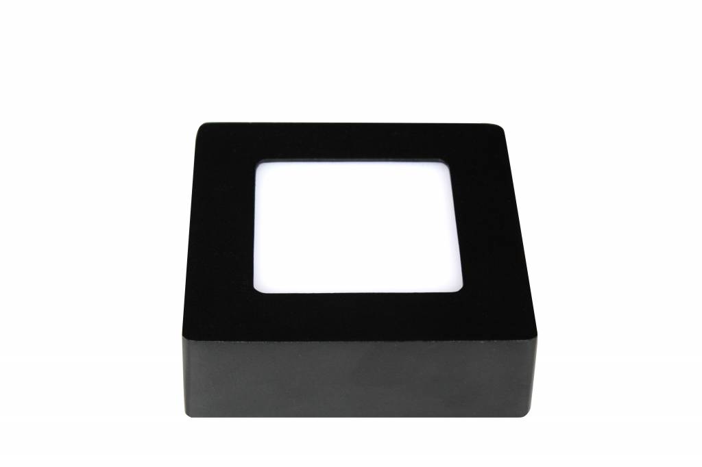 Ce panneau LED en saillie carré LED blanc noir 120x120mm 6W a une couleur noire ou blanche. Les bords (en aluminium) sont en noir et le plexi (sous lequel se trouvent les puces LED) est blanc.