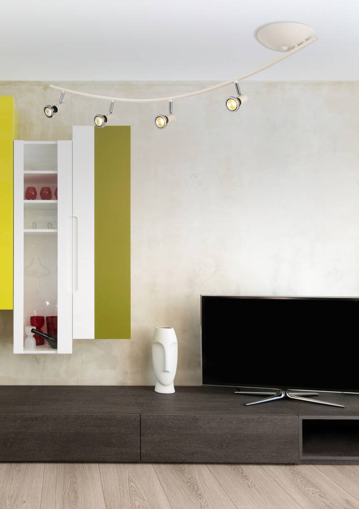 La forme gracieuse rend ce plafonnier LED parfait pour une utilisation sur un plafond moderne, par exemple un plafond tendu. Il est également disponible dans d'autres versions (plafonnier LED 1 spot, 2 spots, 3 spots).