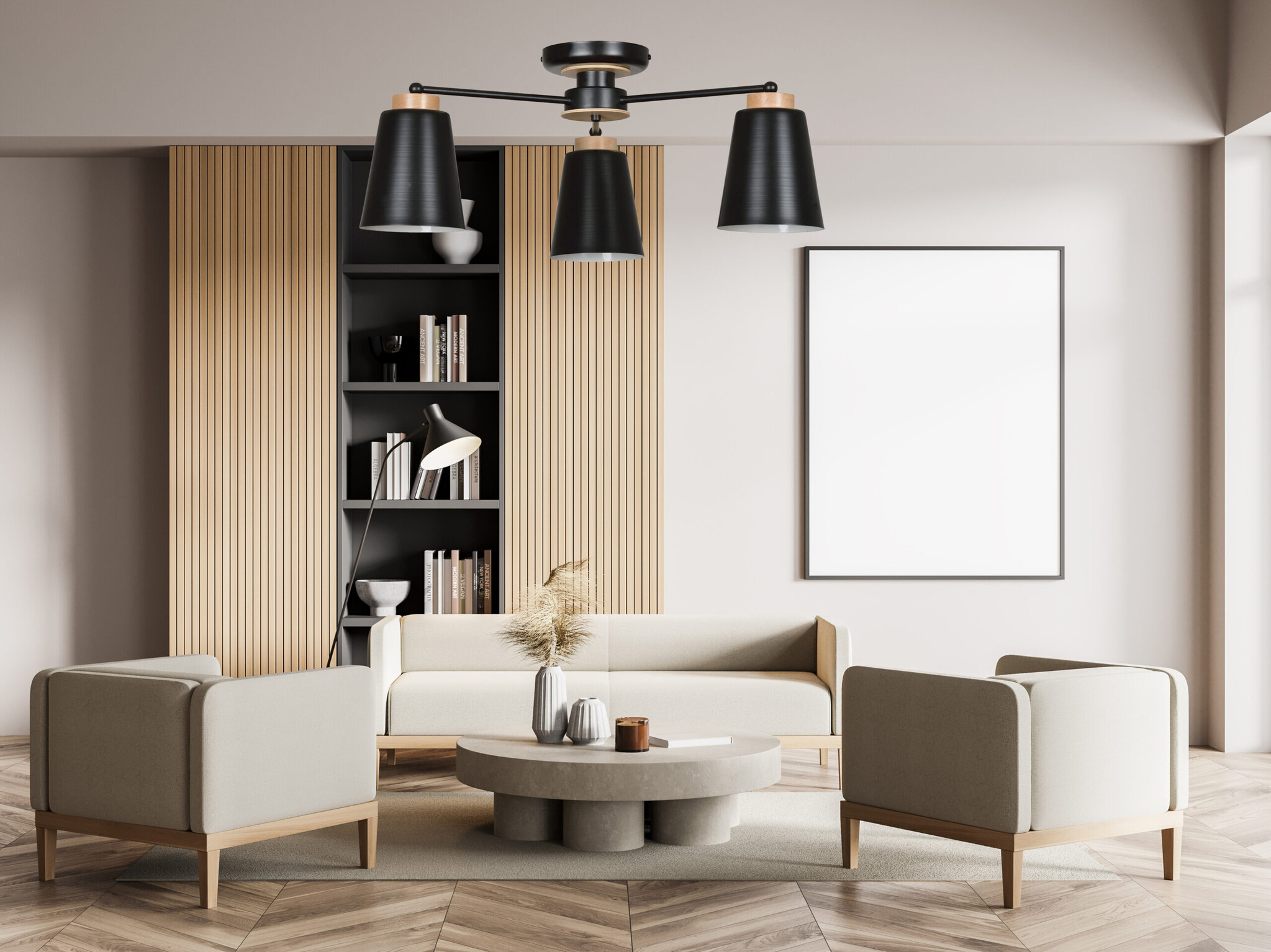 Spécifications Linkoping noir avec plafonnier bois 3 abat-jour métal E27 :