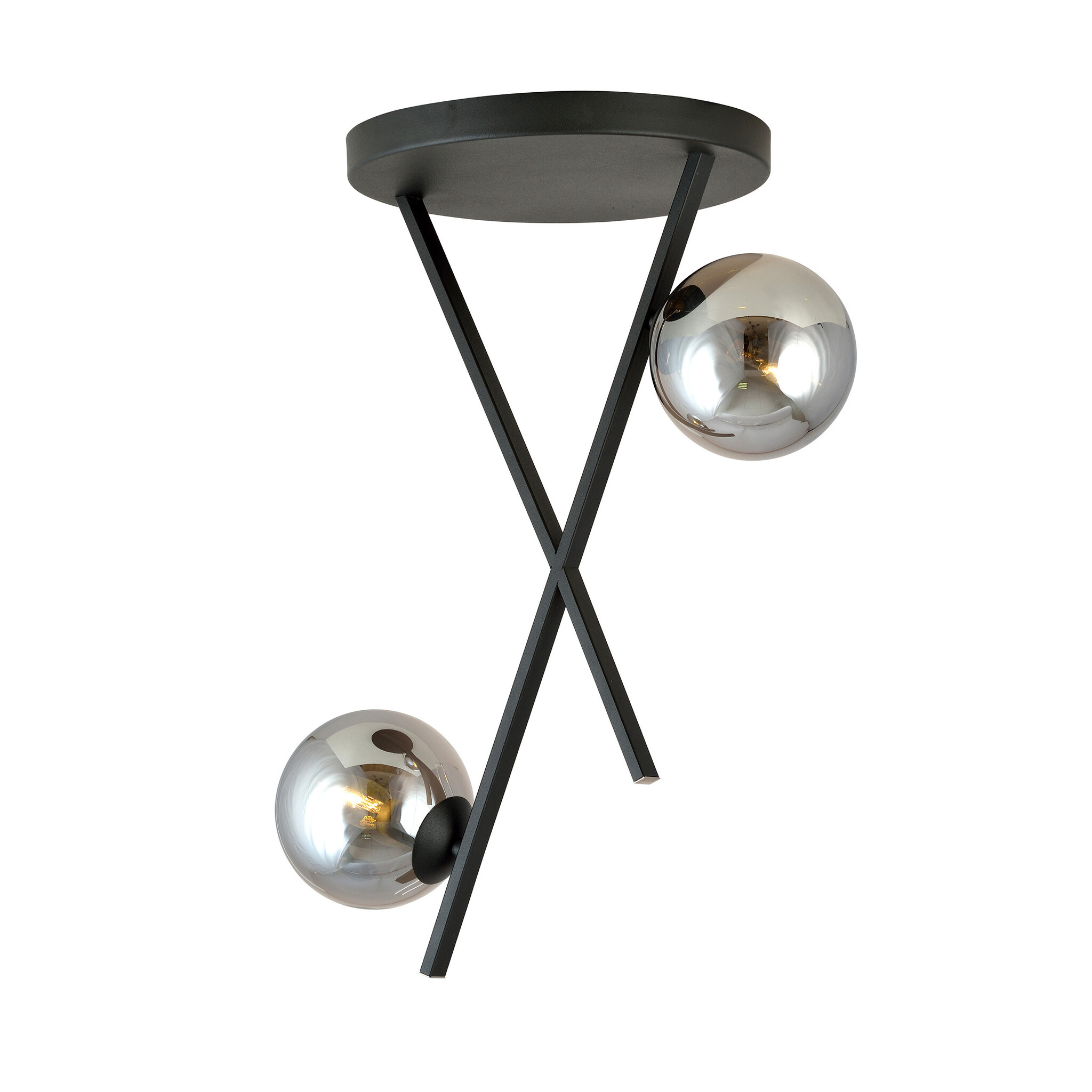 Plafonnier noir avec tiges en métal et 2 boules en verre fumé E14