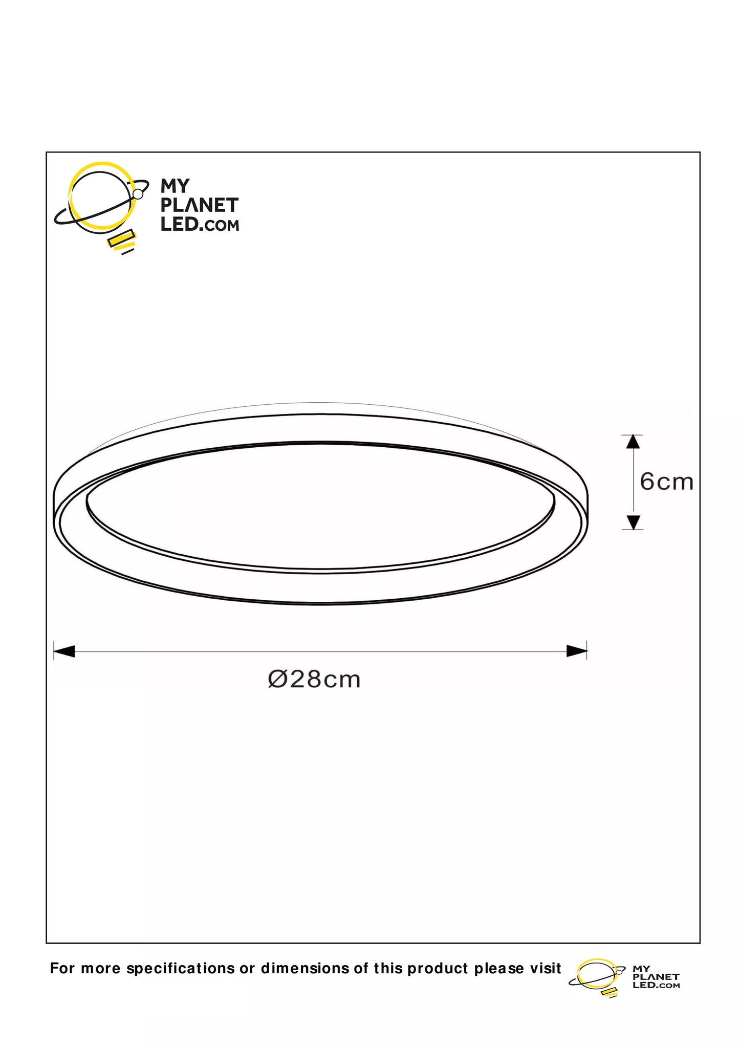 Spécifications plafonnier noir simple 28 cm de diamètre LED Gradation. 1x20W 2700K :
