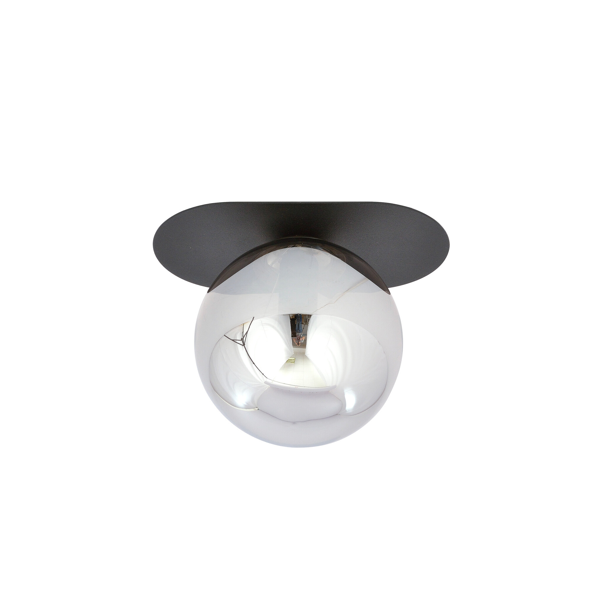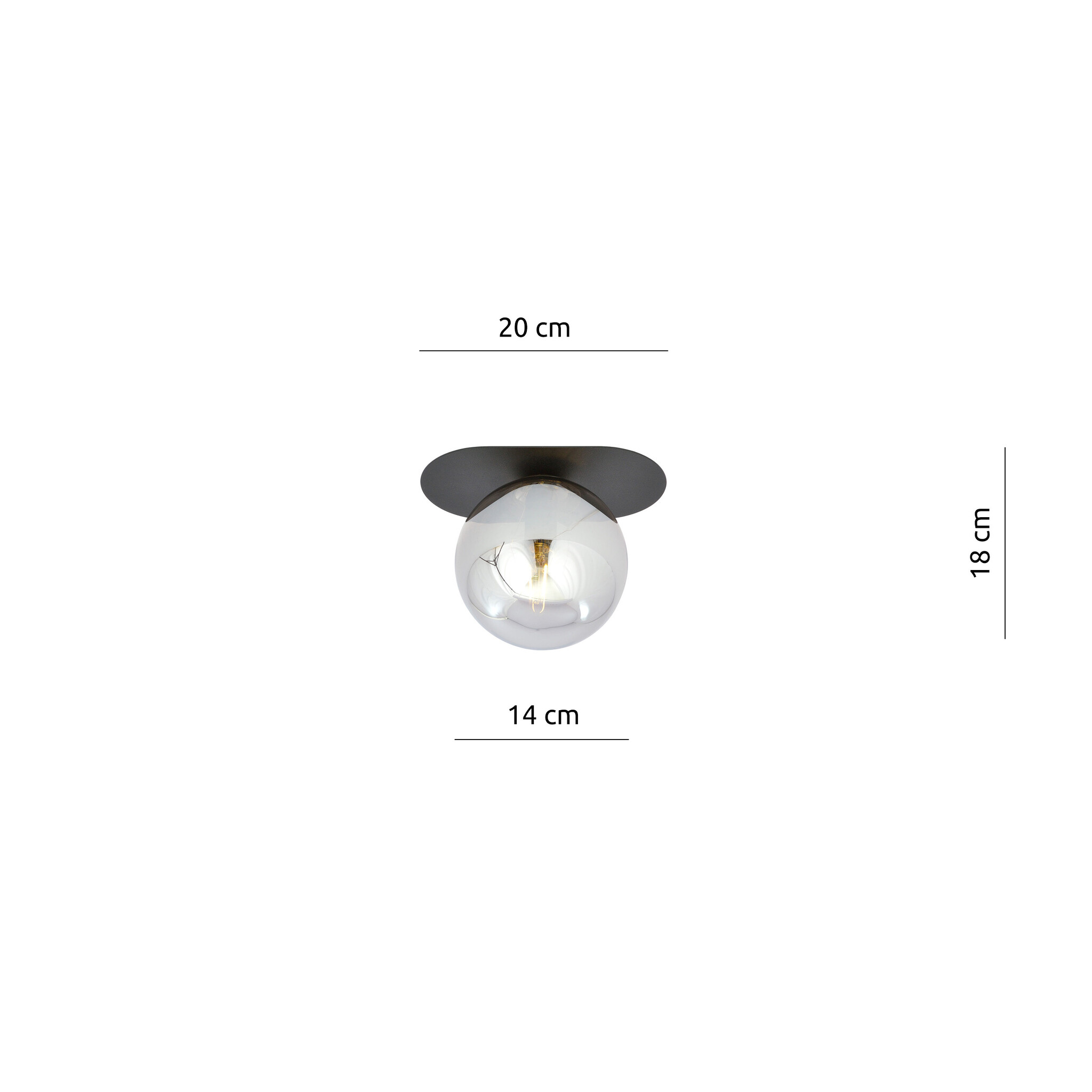 Plafonnier ovale noir Randers avec boule en verre fumé E14