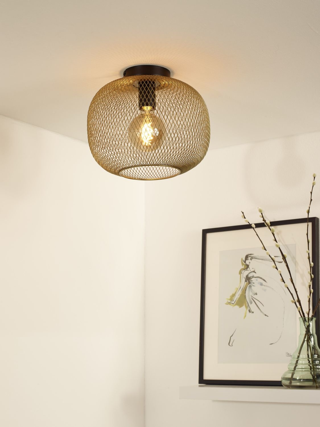 Plafonnier sphérique vintage or mat/laiton 30 cm E27