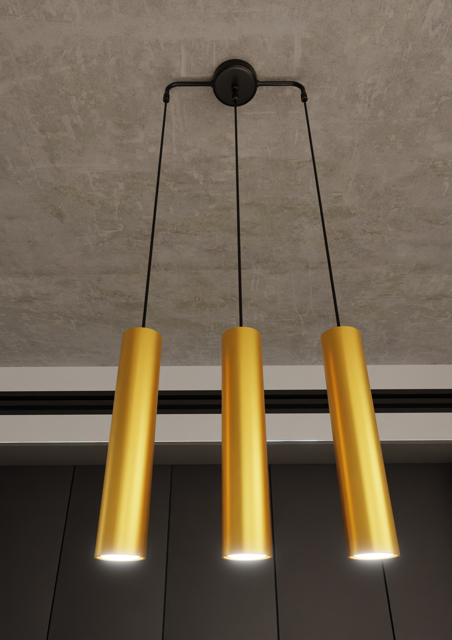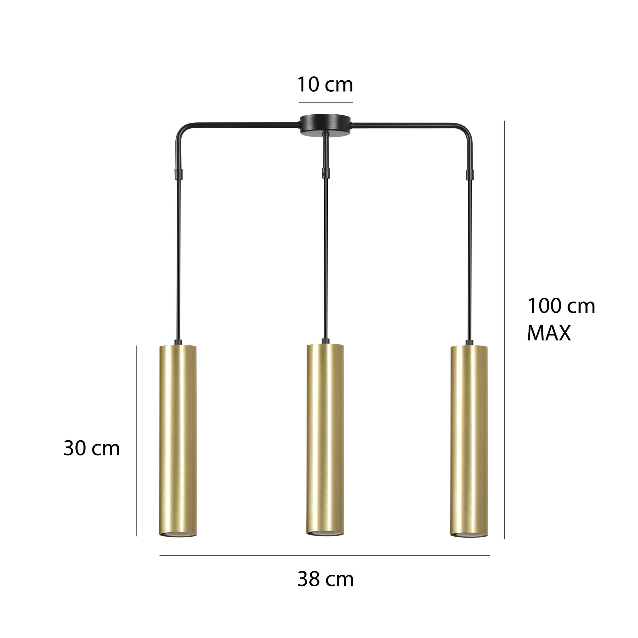 Spécifications Porvoo longue lampe suspendue 3L noire et dorée tubes longs 3x GU10 :