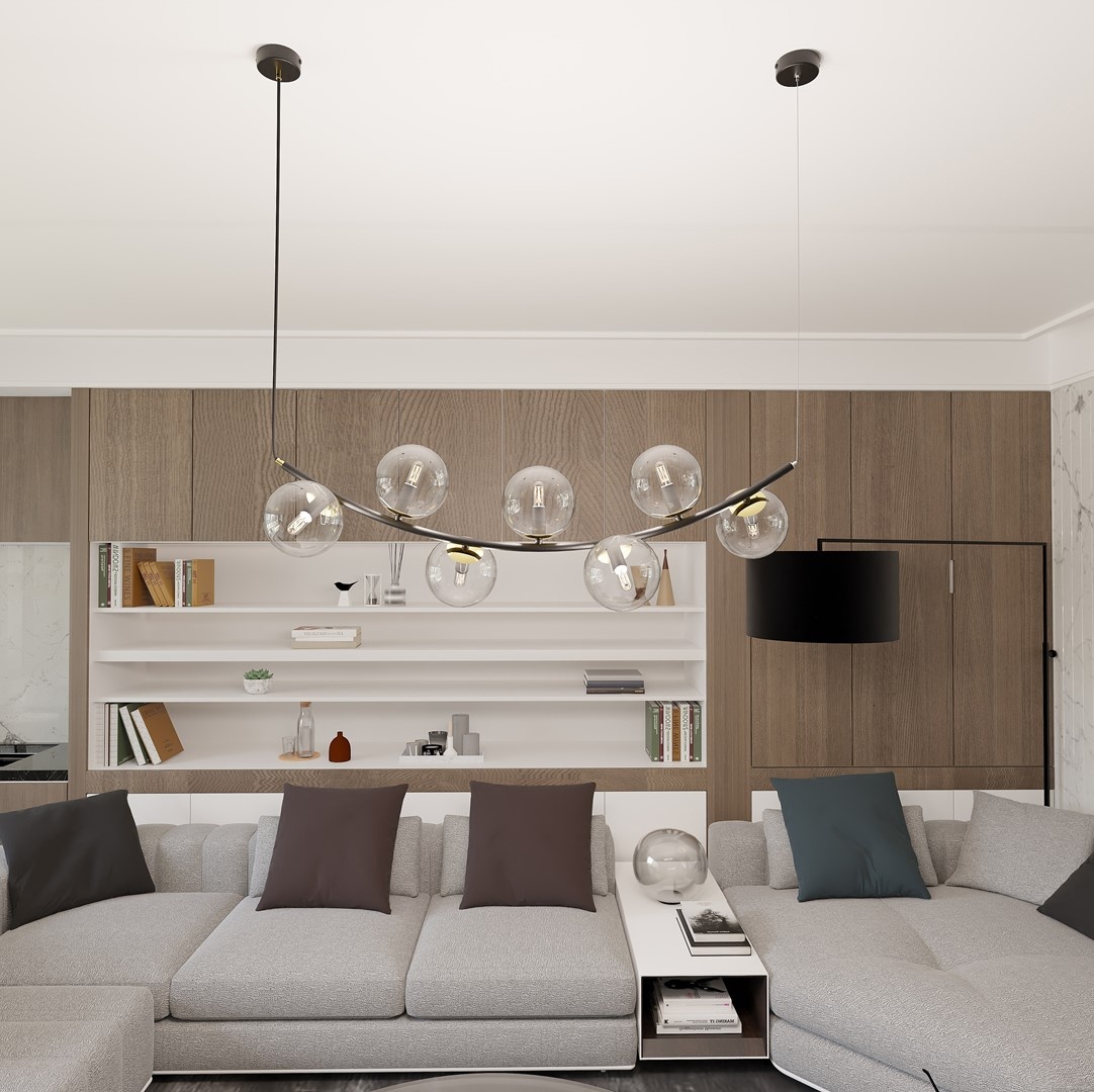 La lampe suspendue Emibig RITZ 7 BL TRANSPARENT est une combinaison magnifique de style rétro et de matériaux modernes. Avec son abat-jour transparent élégant et son design unique, cette lampe est parfaite pour éclairer votre salle à manger, votre salon ou votre bureau.