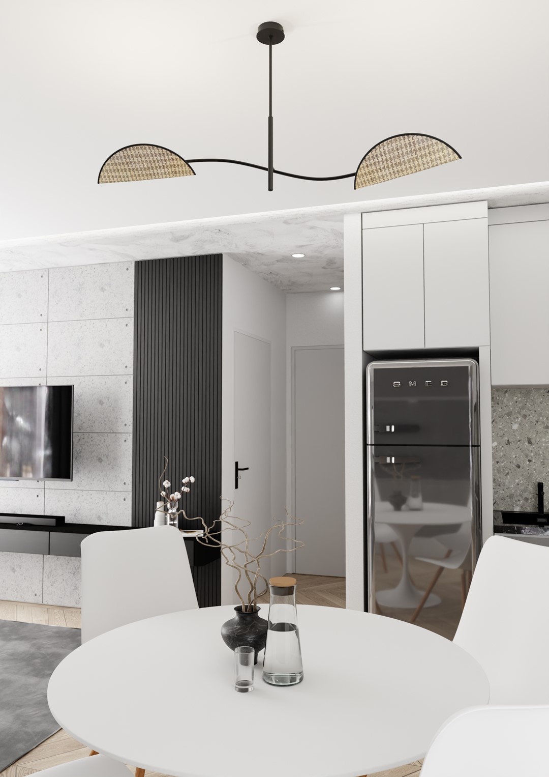 Fabriquée en acier revêtu de poudre, cette lampe garantit durabilité et look contemporain. Elle mesure 140 cm de hauteur et 50 cm de diamètre, ce qui la rend idéale au-dessus d'une table à manger ou dans le salon.