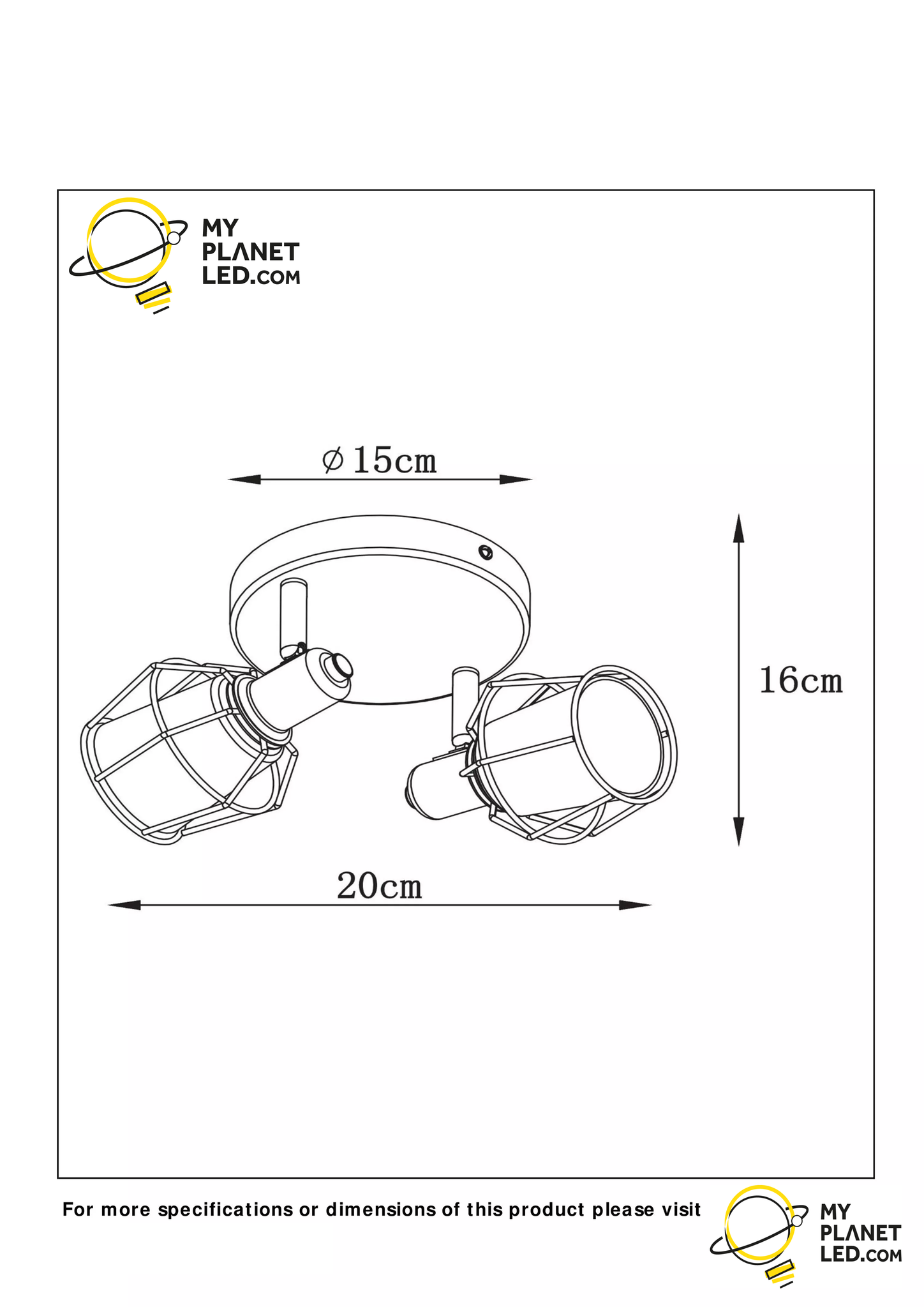 Spécifications spot plafond noir look vintage et moderne E14 :