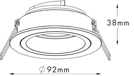 La taille extérieure est de 92 mm et vous avez besoin d'une ouverture de 82 mm. La hauteur est de 38 mm. Ce spot encastrable doré est orientable et présente une forme ronde.