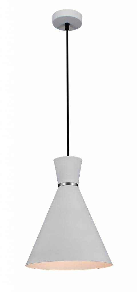 Cette suspension tendance est disponible en blanc, noir ou cuivre.