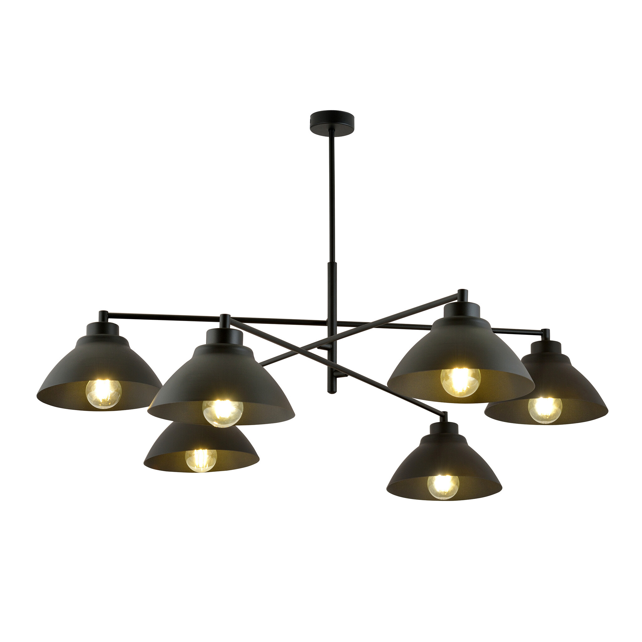 Lampe à suspension design noire avec 6 abat-jour coniques E27