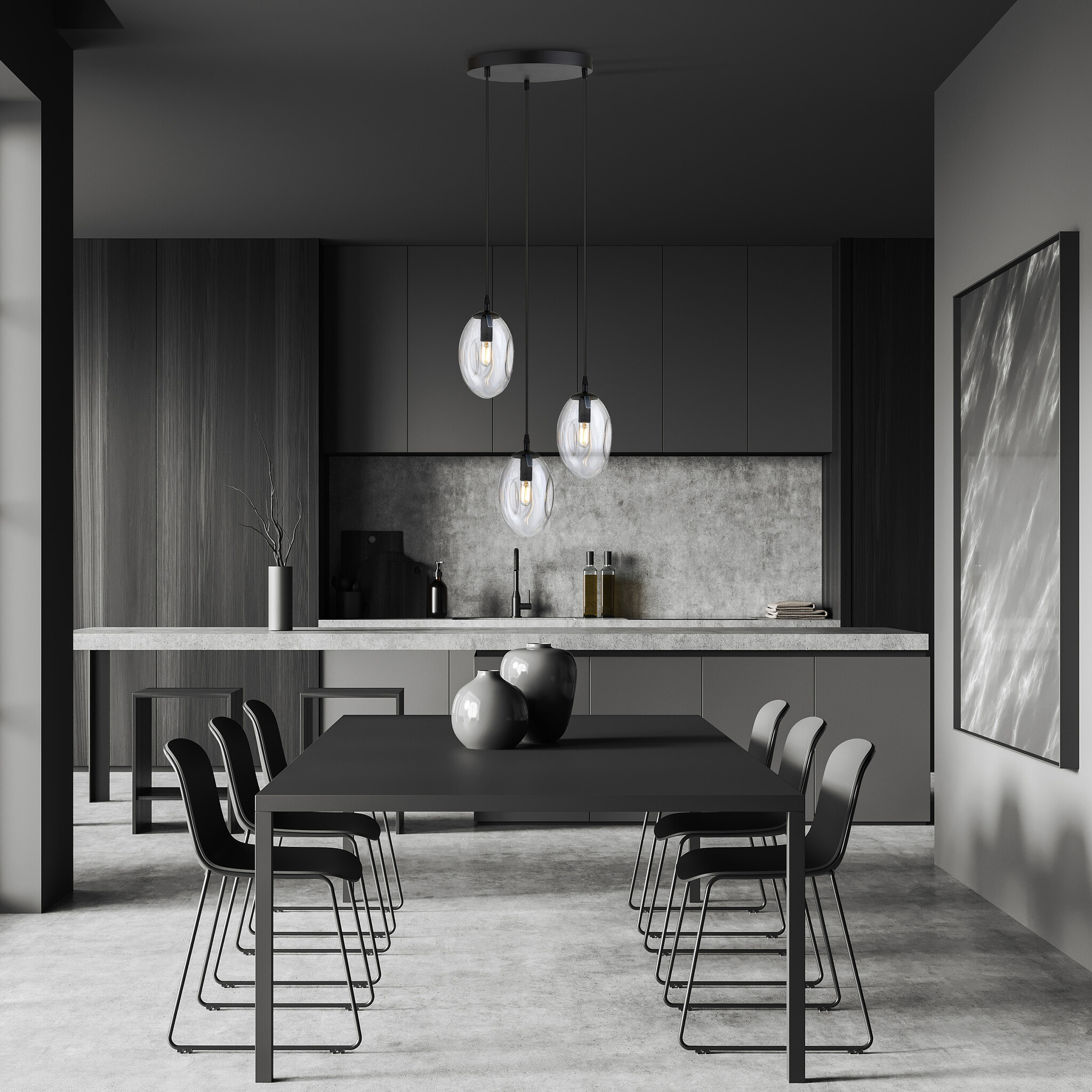 Suspension noire à 3 ampoules avec verre transparent soufflé 3x E14