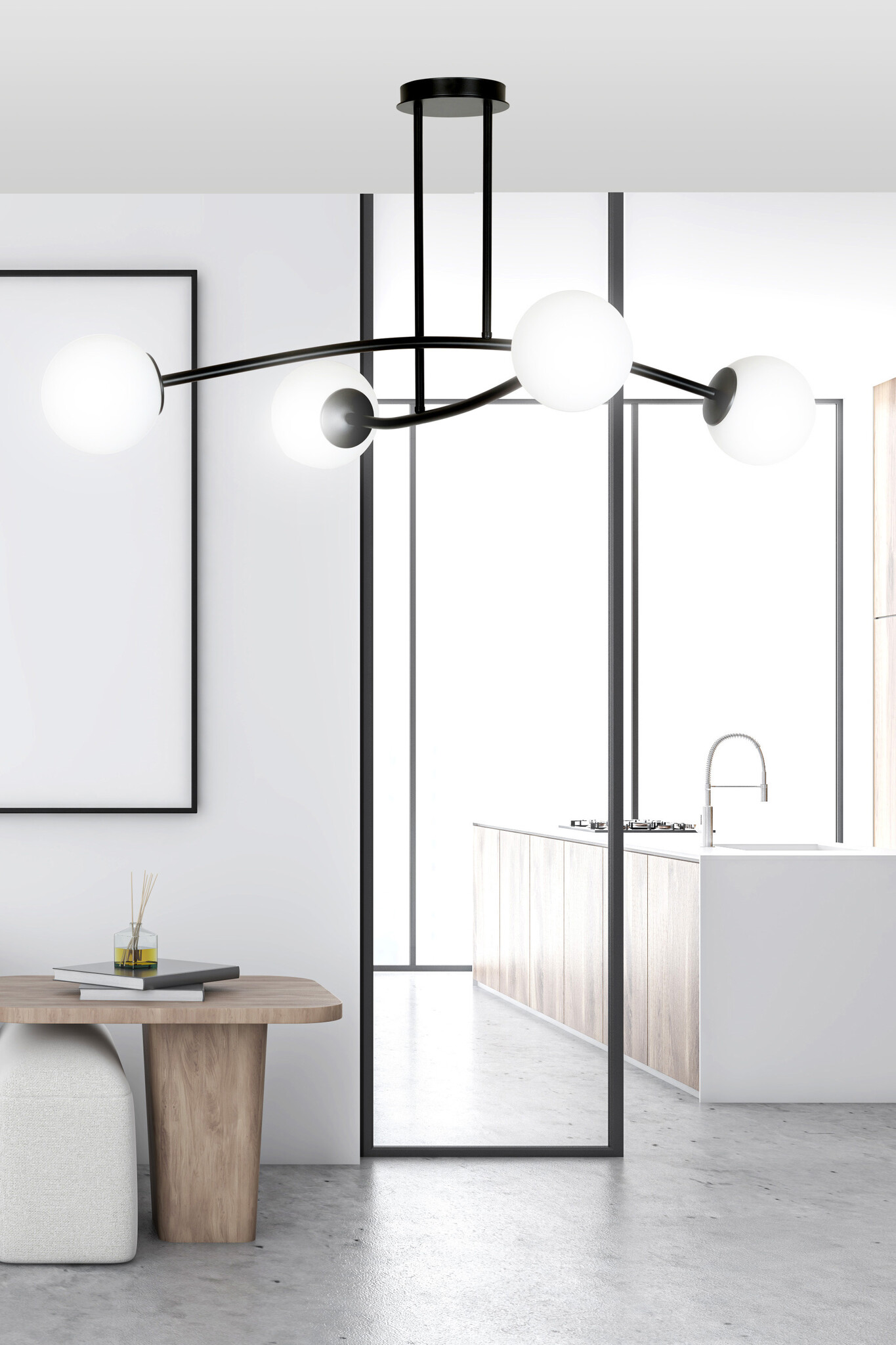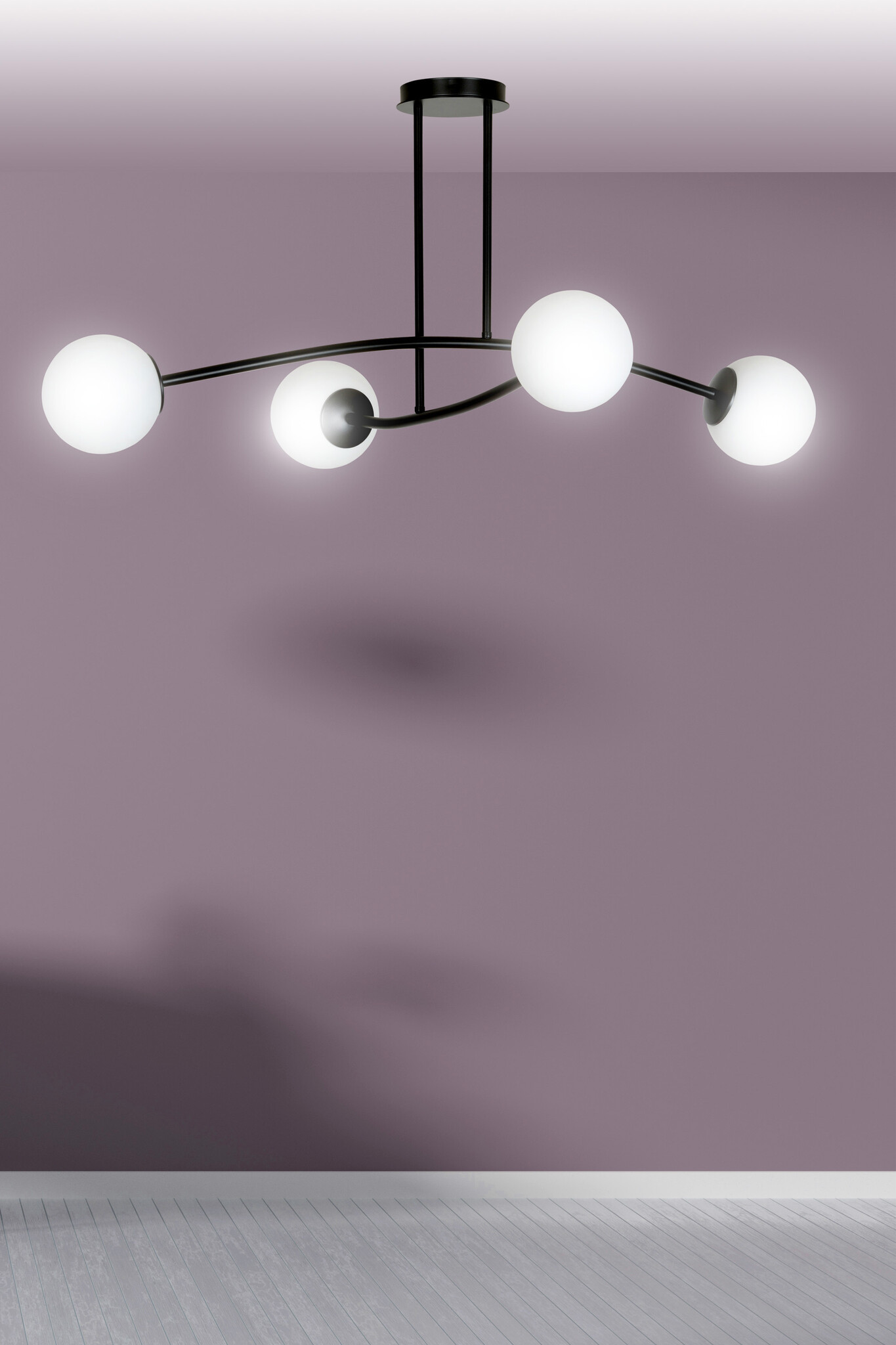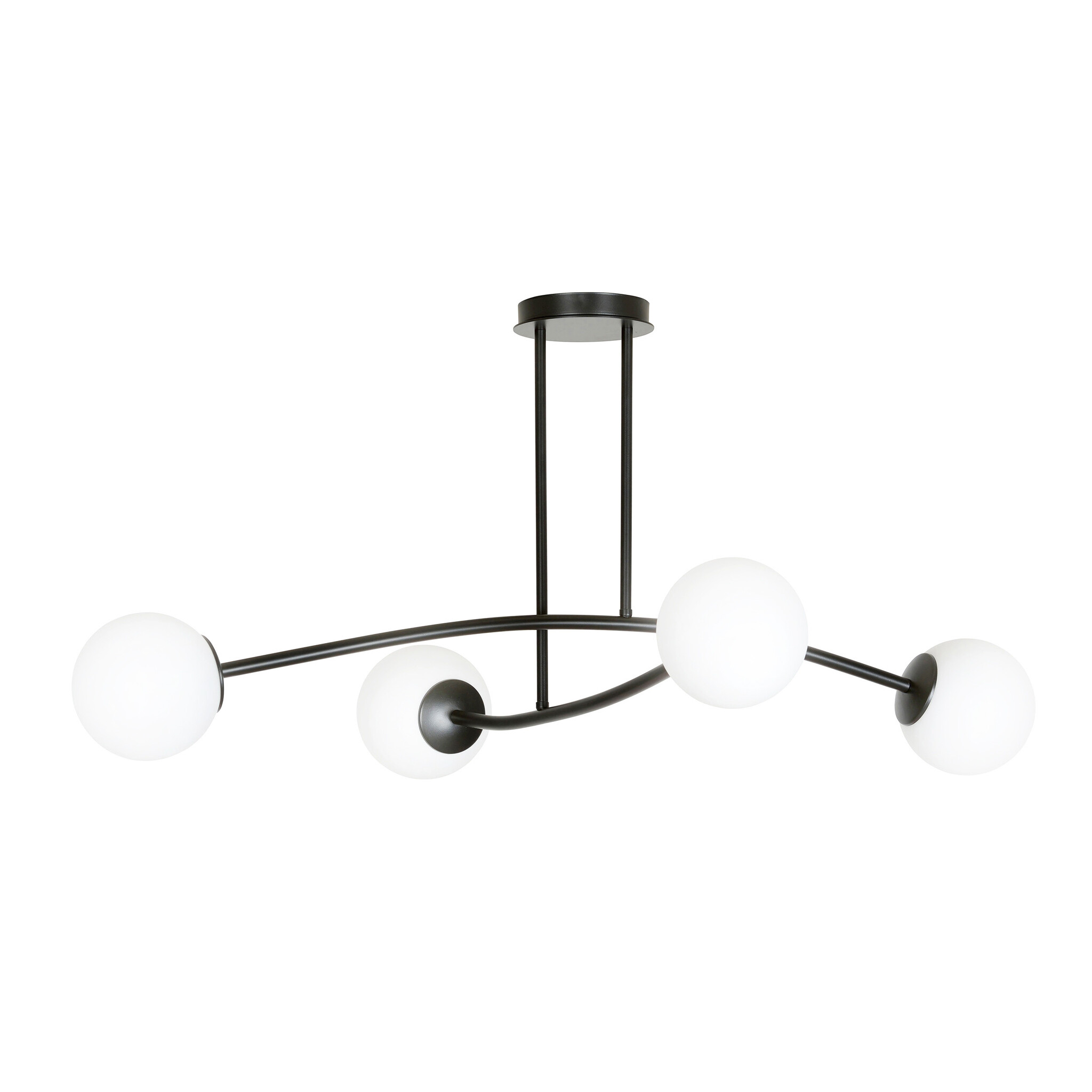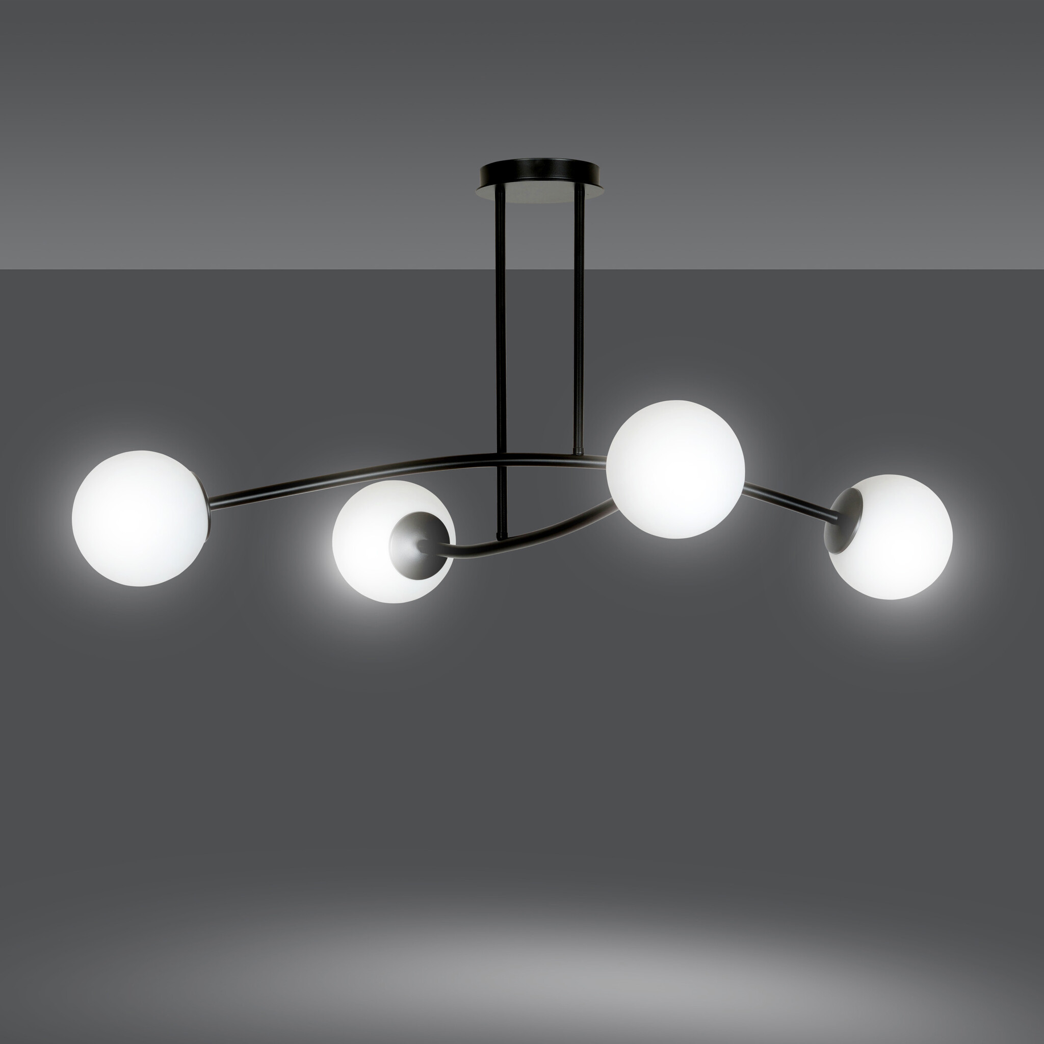 Suspension simple Lemvig noire avec verre blanc 4 lampes E14