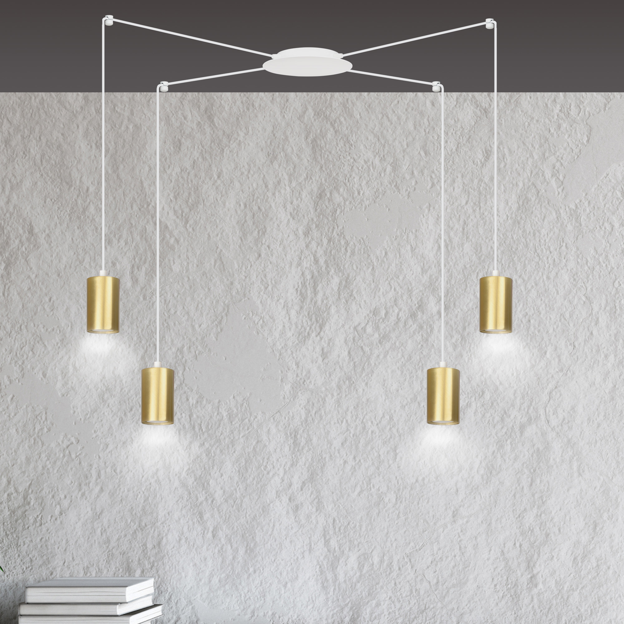 Spécifications Turku moyenne suspension araignée blanche avec 4 tubes dorés en métal GU10 :