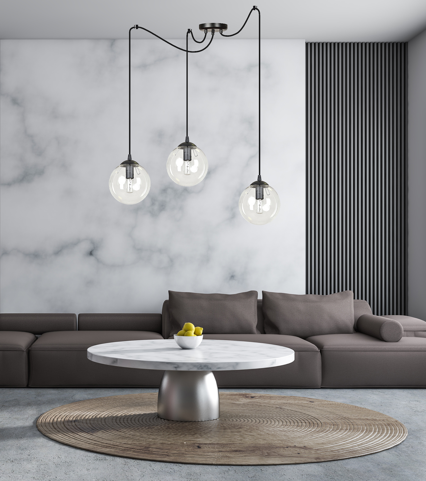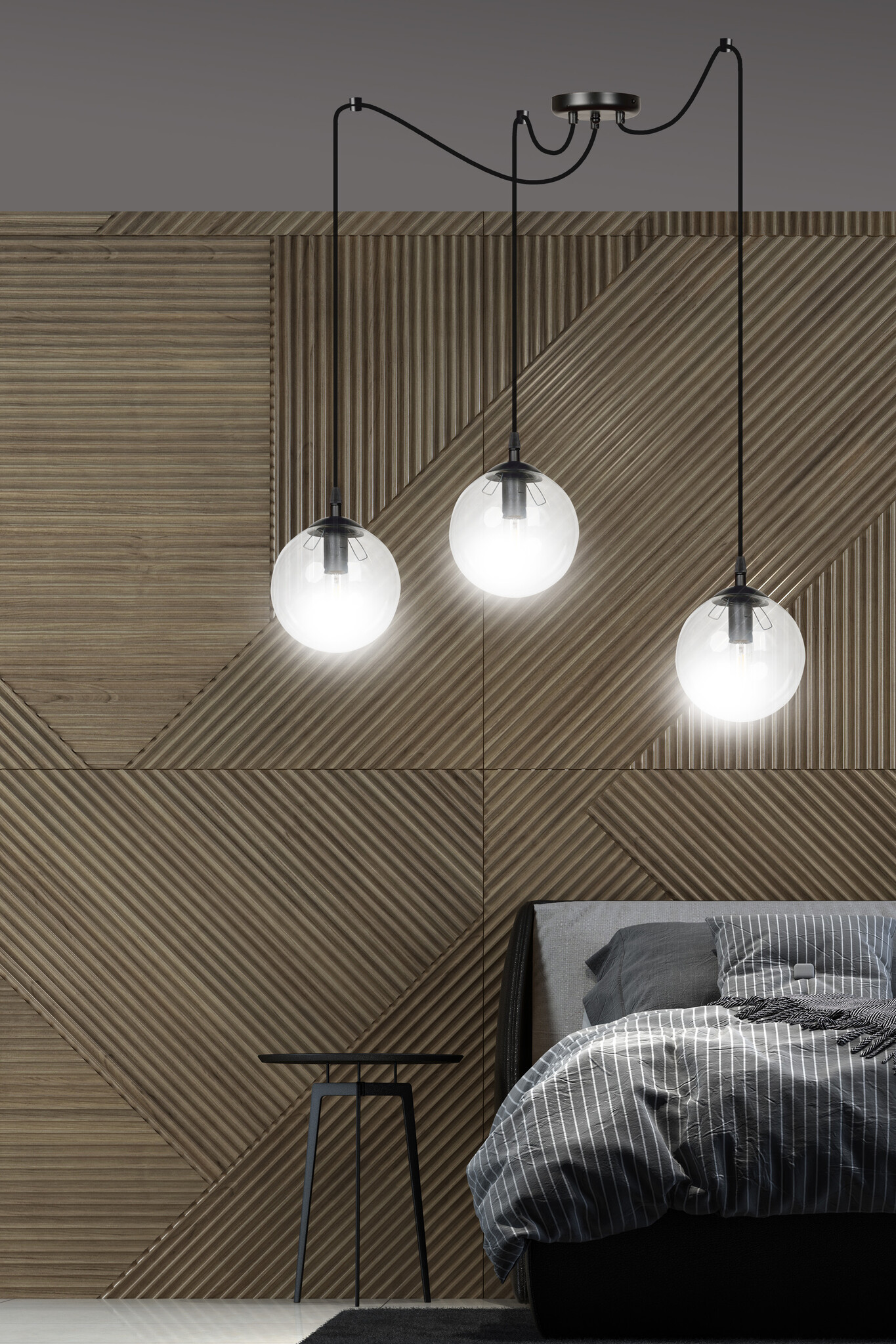 Suspension Uppsala noire 3L avec verre transparent 3x E14