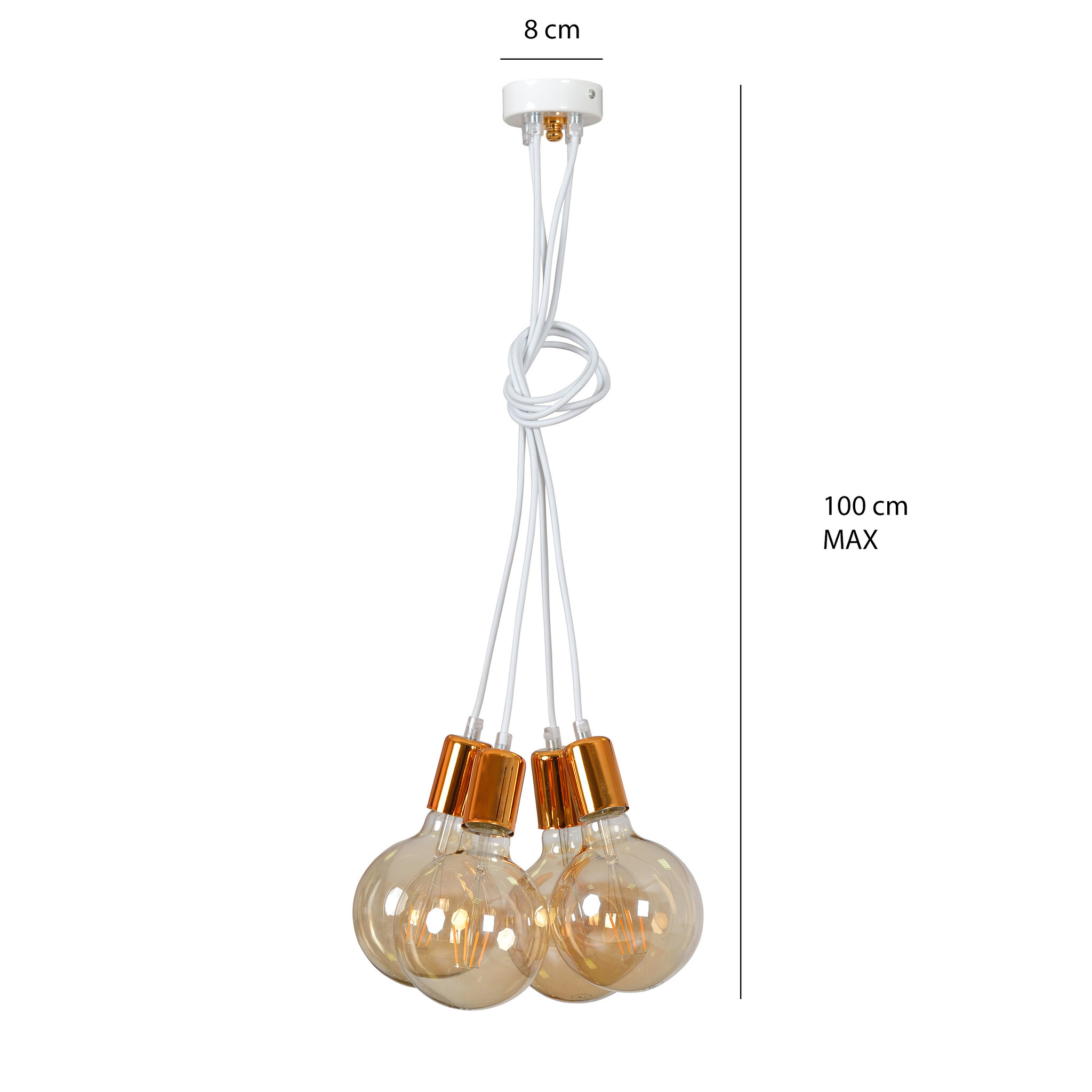 Suspension Vasteras 4L blanche et cuivre 4x suspension E27