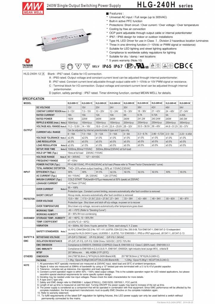 Ceci est le transformateur LED de Meanwell le plus performant. Il a une puissance jusqu'à 240W.