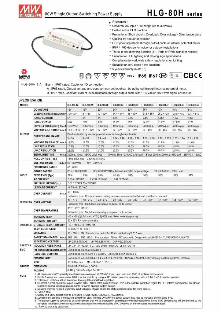Transfo LED Meanwell 0-80W IP65