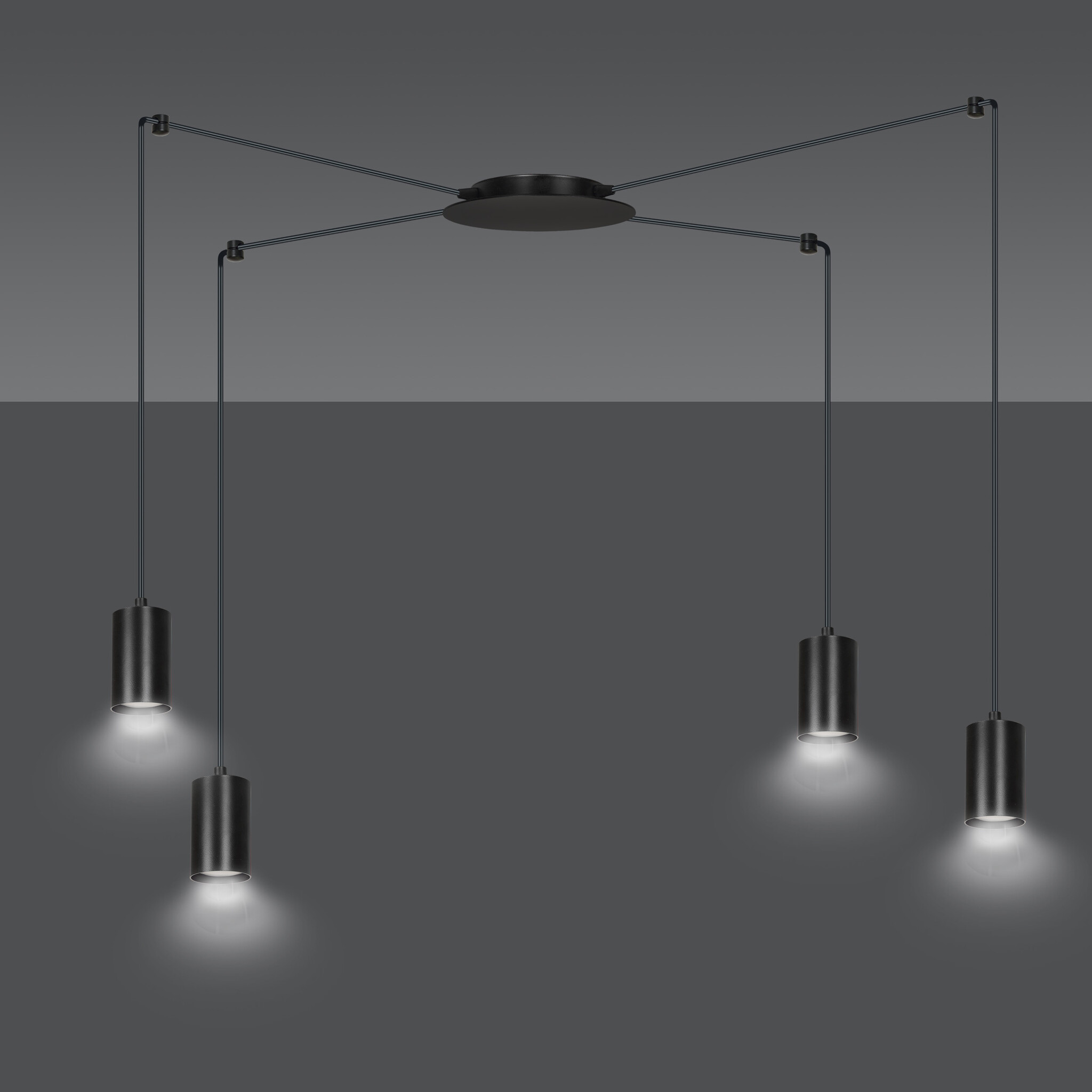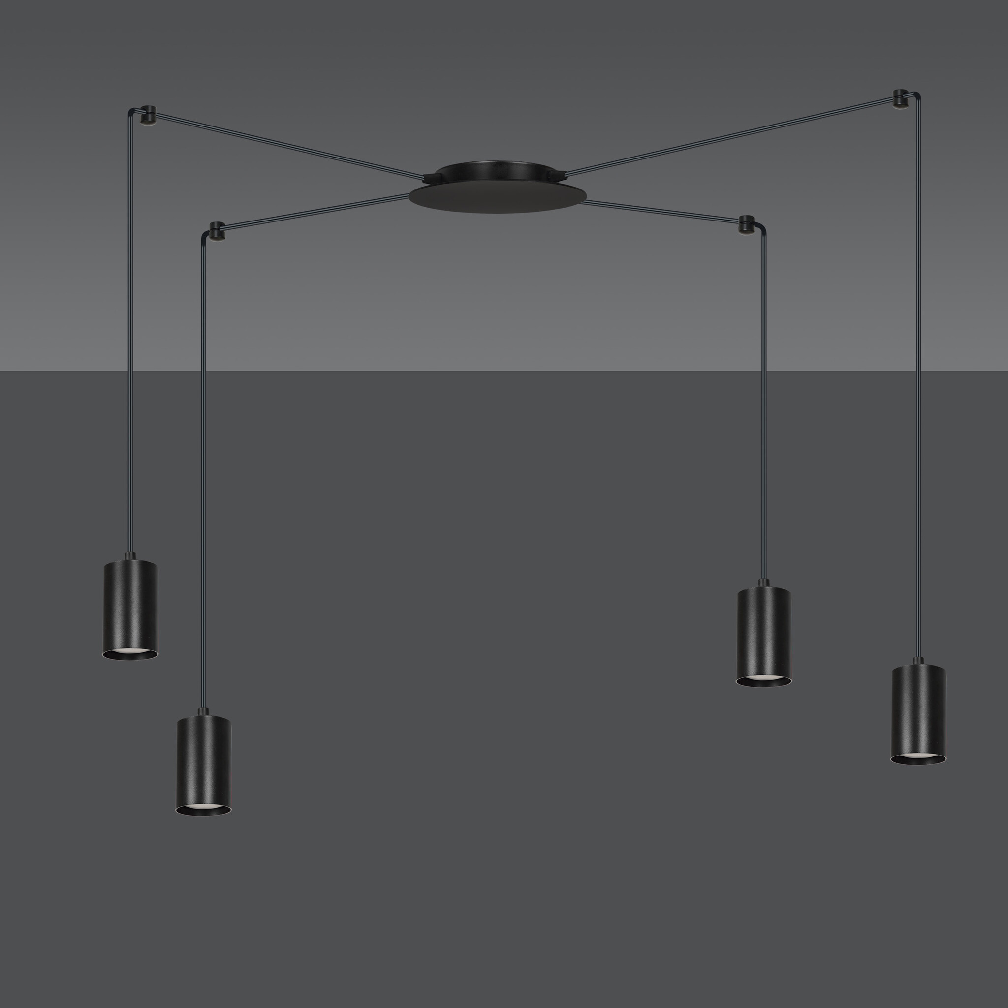 Vantaa suspension araignée moyenne noire avec 4 tubes noirs métal GU10