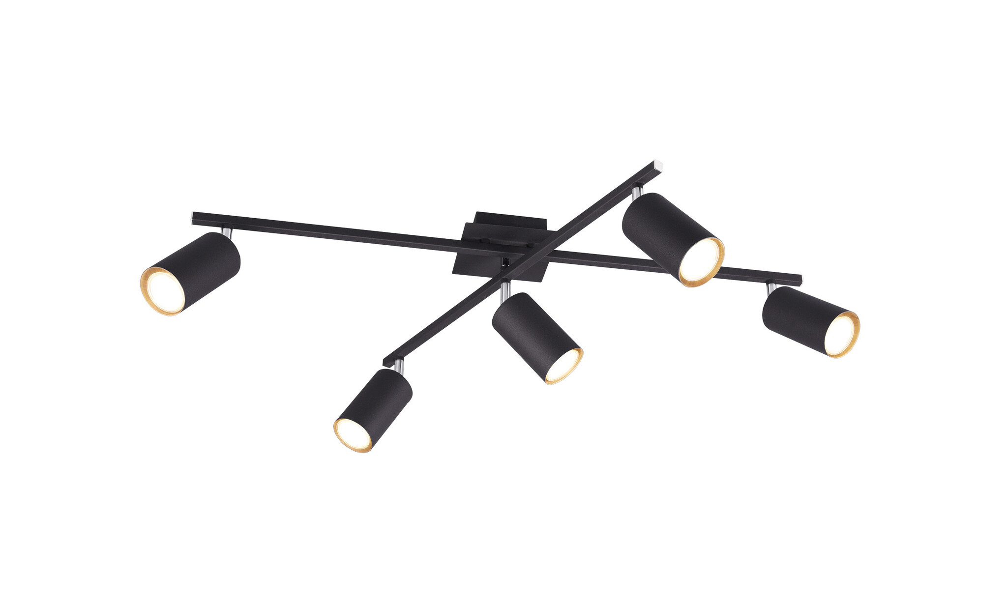 Specificaties draaibaar mat zwarte asymmetrische plafondlamp 5xGU10: