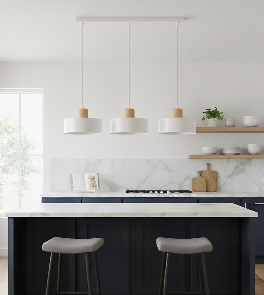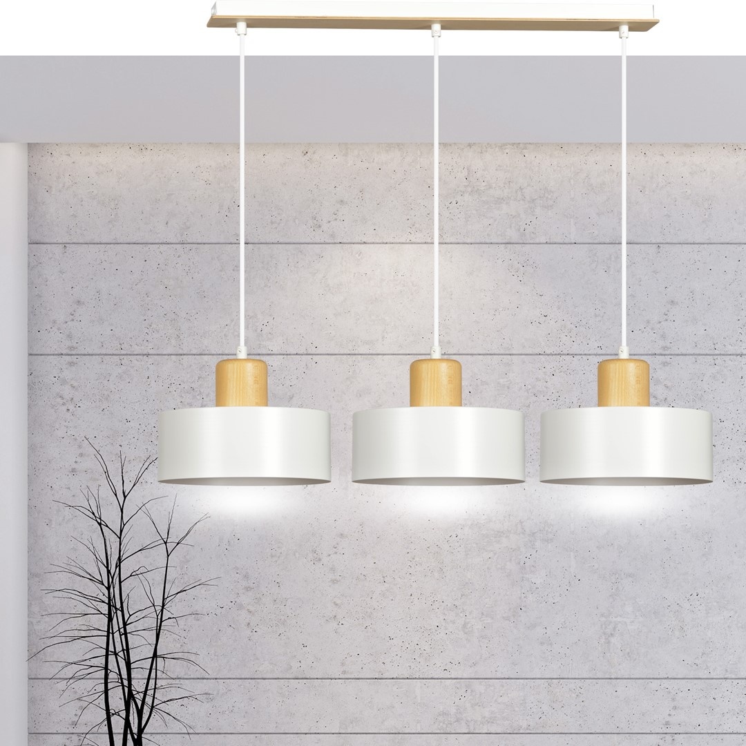 De TORIN 3 WHITE hanglamp is een perfecte combinatie van functionaliteit en stijl. Gemaakt van poedercoated staal en hout, biedt deze lamp een eigentijdse uitstraling die elke kamer verlicht.