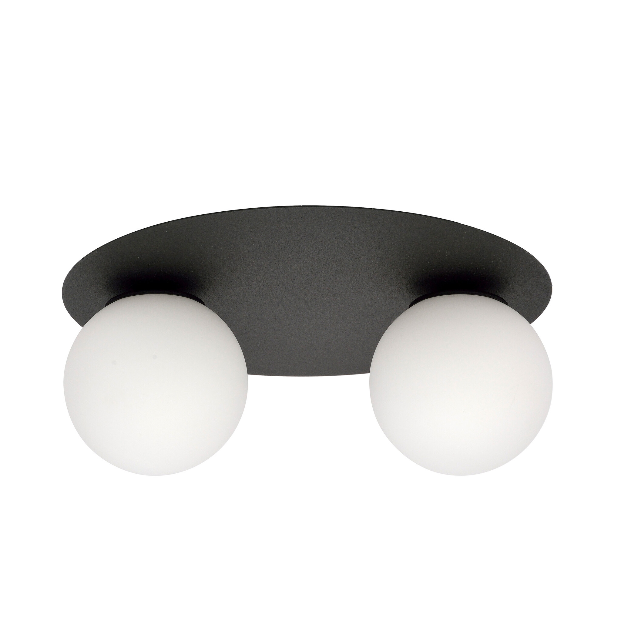 Esbjerg dubbele plafondlamp zwart met 2 witte opaalglas bollen E14