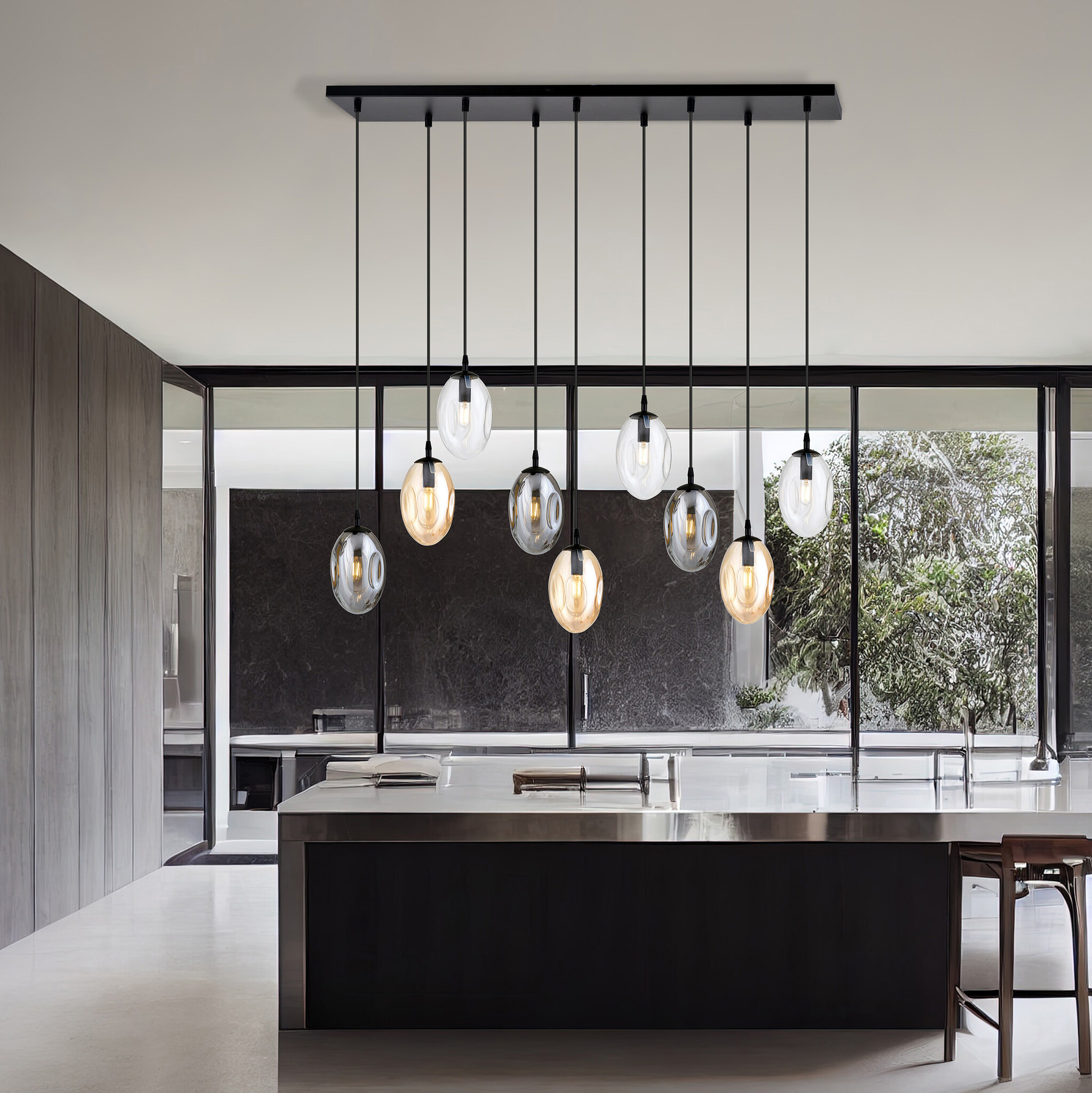 Als je op zoek bent naar opvallend knappe hanglampen, dan ben je bij Myplanetled.com goed terechtgekomen. Koop deze grote hanglamp voor boven tafel met 9 verschillende glazen pendels E14 en we leveren deze snel en met de grootste zorg tot bij u. Ook voor meerdere stuks of professionele aankoop kan u bij ons terecht. Contacteer ons via chat, mail of telefoon en u zal overtuigd worden door onze vakkennis en service.