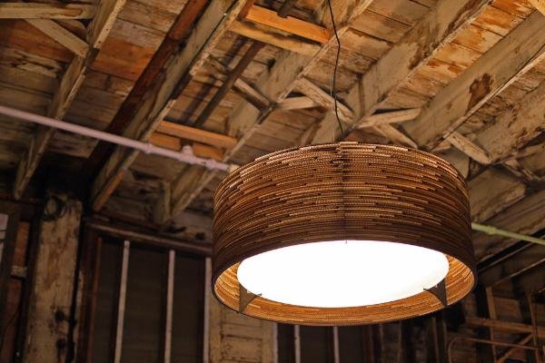 Het karton, dat op een milieuvriendelijke manier verwerkt wordt tot deze authentieke design hanglamp is behandeld met een niet-schadelijk, brandwerend product.