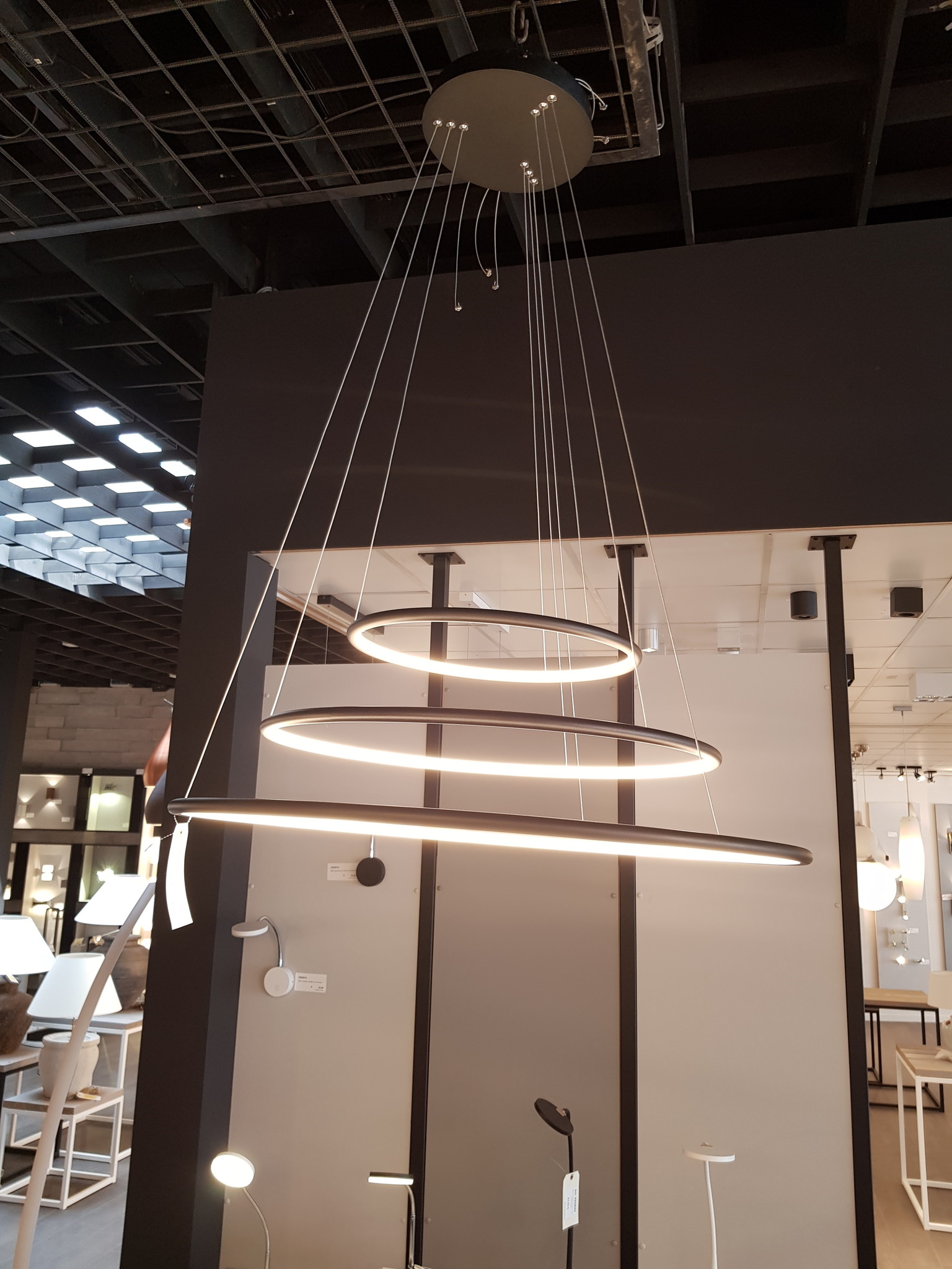 Deze hanglamp met ringen is een absolute topper! De 3 grote ringen vormen een prachtig verlicht schouwspel en nemen een belangrijke plaats in in uw interieur. Wil u een echte eyecatcher? Dan kan dit tellen! Deze cirkelvormige hanglamp heeft een lichtintensiteit van maar liefst 6435 lumen en een vermogen van 99 W. De 3 cirkels hebben een diameter van 40, 60 en 80 cm en zijn allemaal ongeveer 10 cm van elkaar geplaatst. De totale hoogte van deze hanglamp met cirkels is 120 cm (aanpasbaar) en dat maakt haar geschikt om te plaatsen in interieurs met hoge plafonds, denk bijvoorbeeld aan herenhuizen, grote villa's maar ook restaurants en hotels.