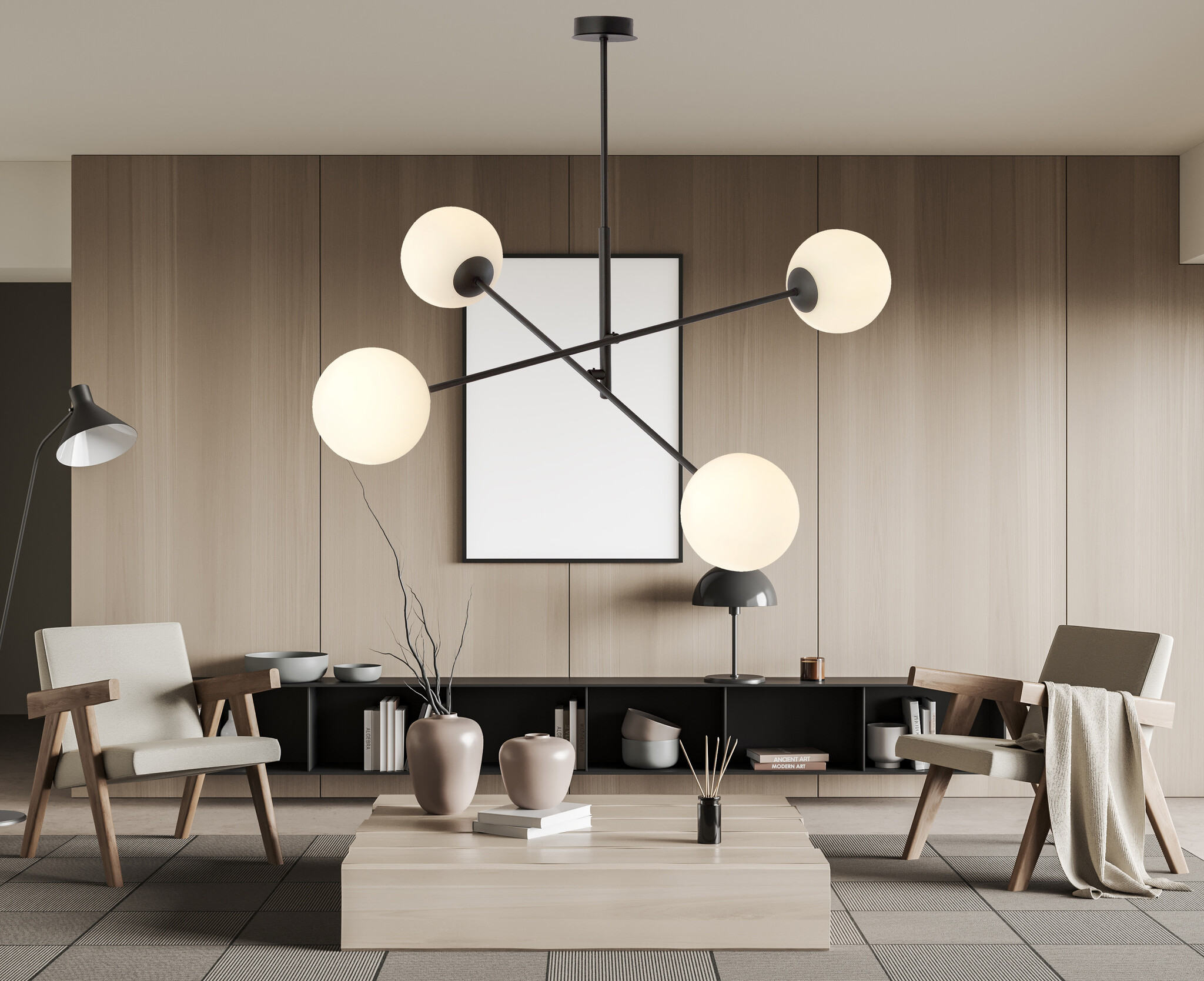 Hedensted medium hanglamp zwart met 4 melkglazen bollen E14