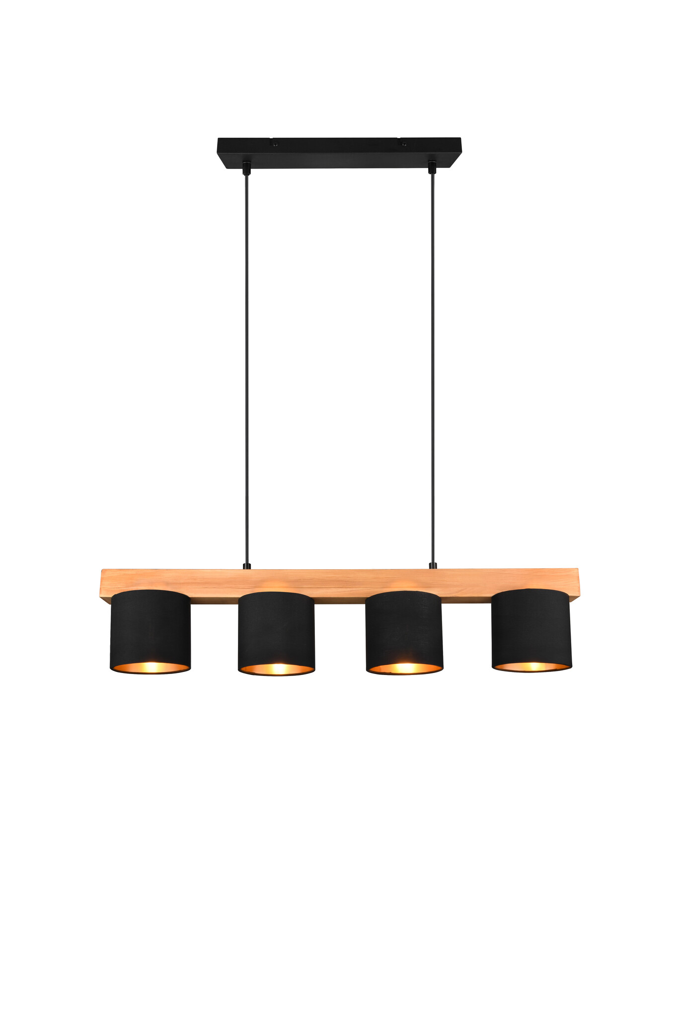 Houten hanglamp pendel 4xE14 zwart buiten goud binnen