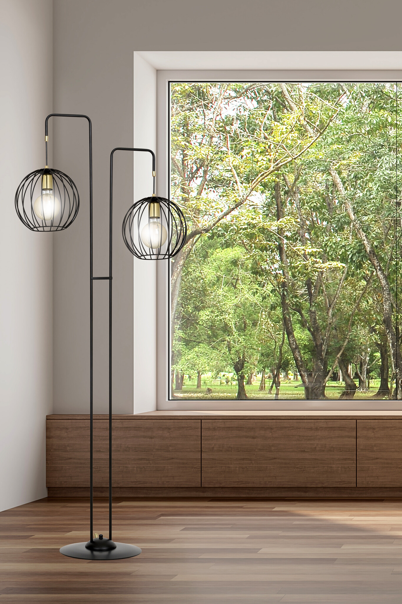 Specificaties Kajaani vloerlamp zwart en goud 2x E27: