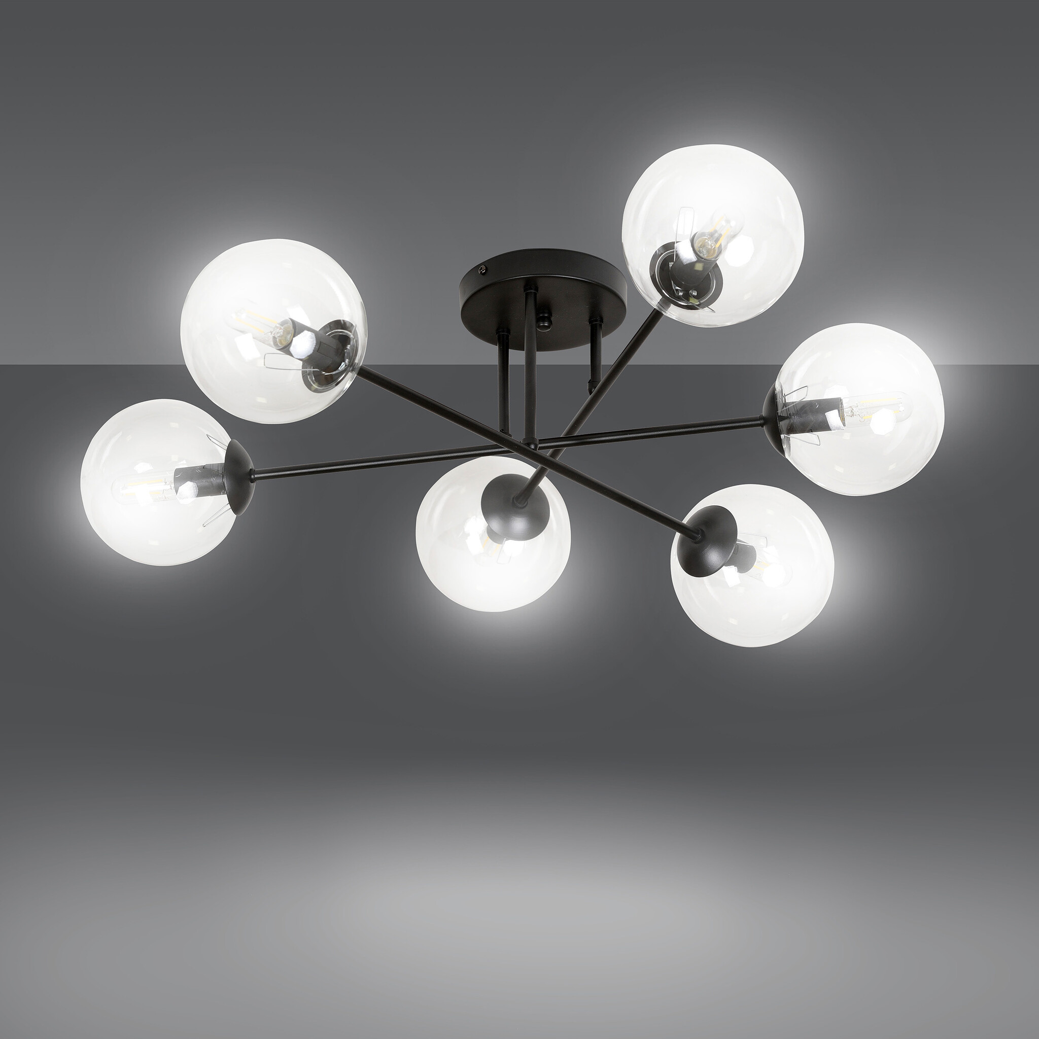 Kangasala ronde toffe 6L plafondlamp zwart met transparant glas bollen E14