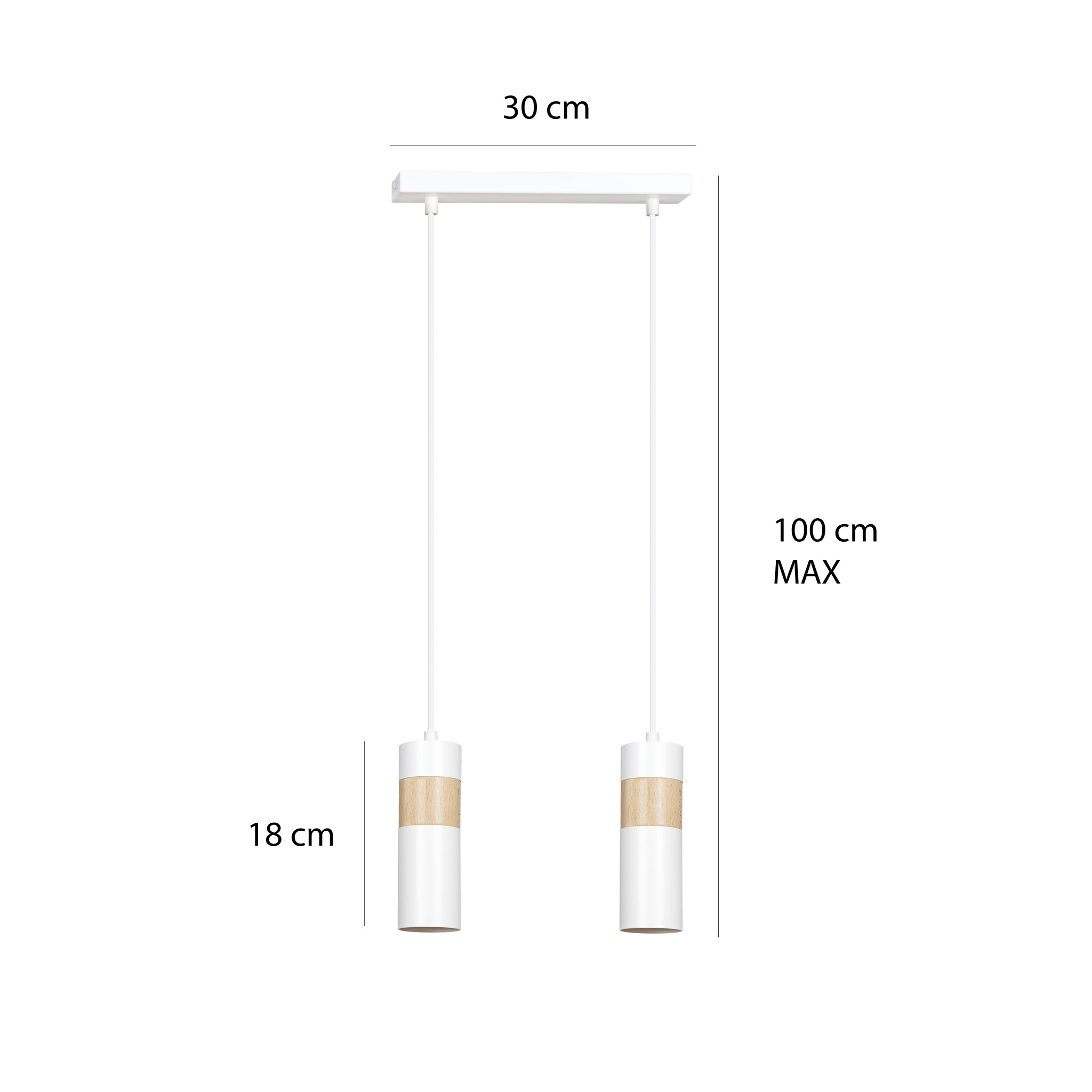 Kerava dubbele wit en houten pendellamp 2x GU10