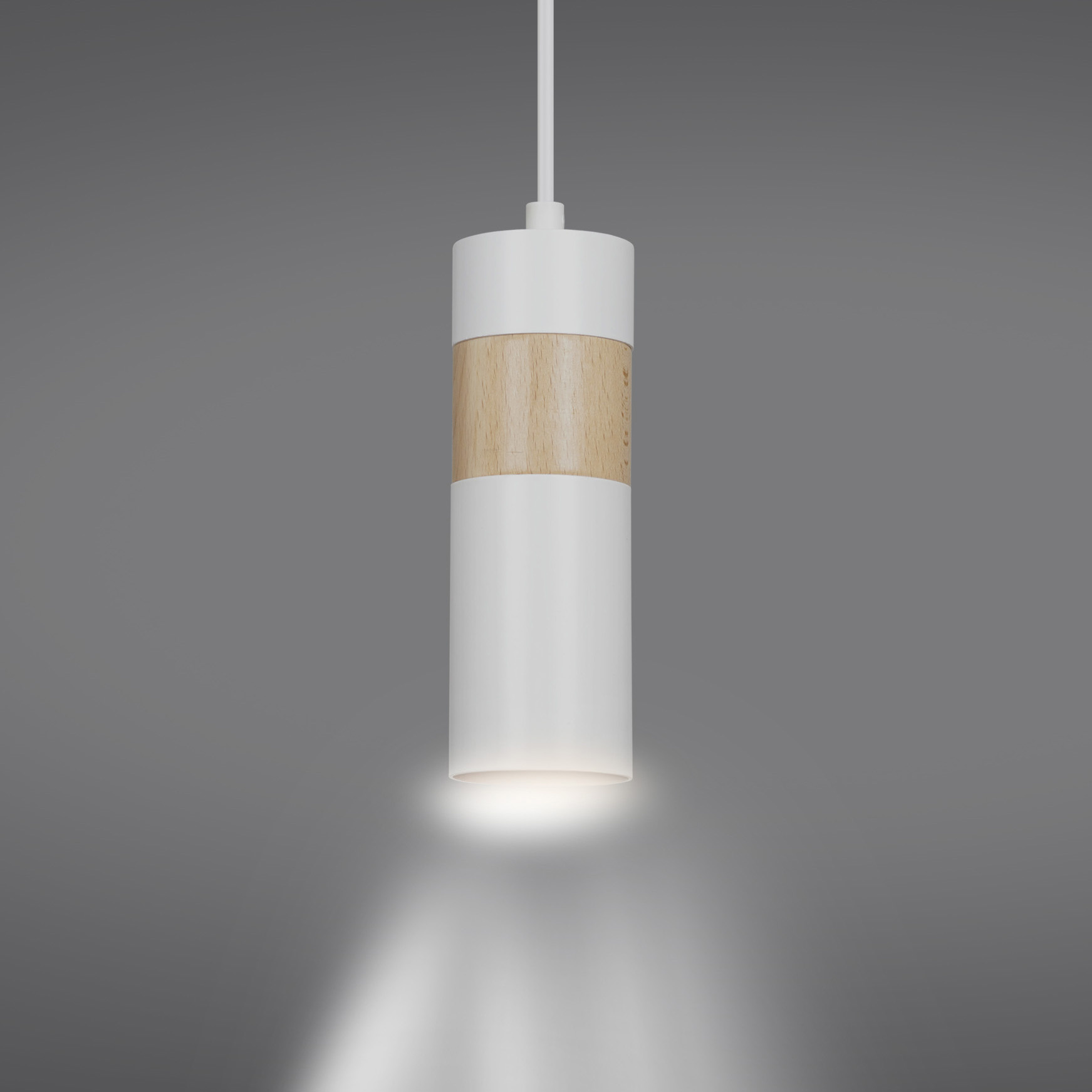 Specificaties Kerava enkele witte en houten pendellamp 1x GU10: