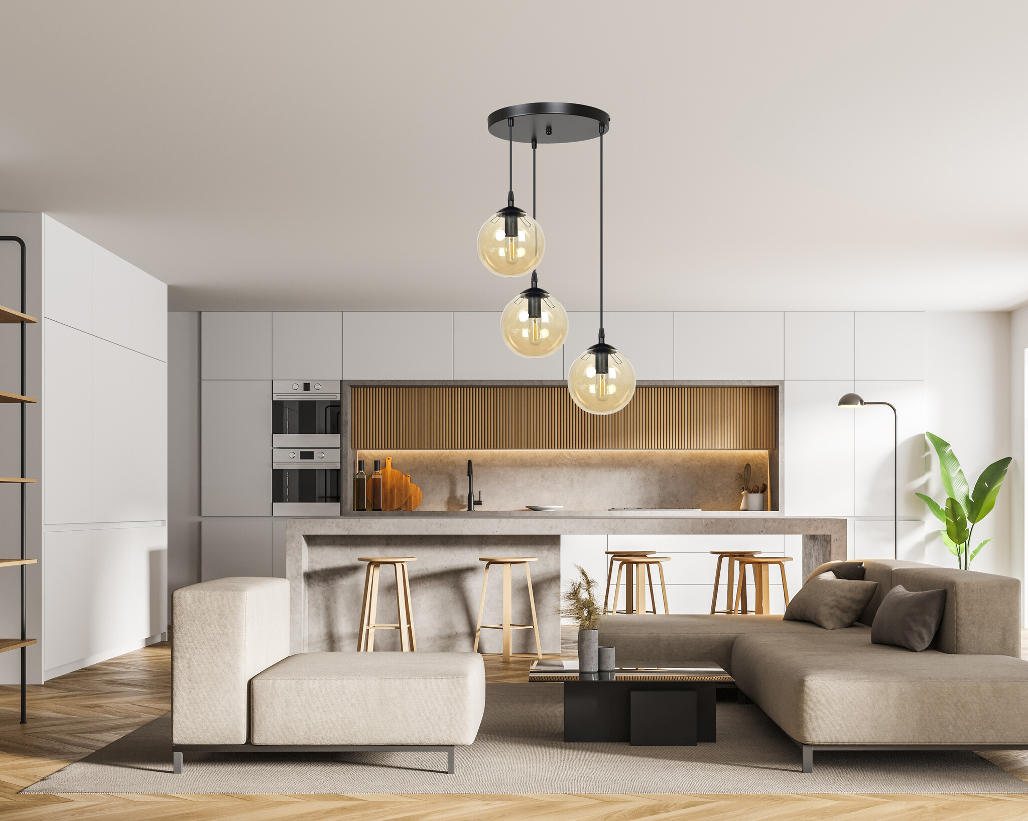 Kerteminde 3 lamp amber bol 14 cm hanglamp rond met regelbare hoogte 3x E14