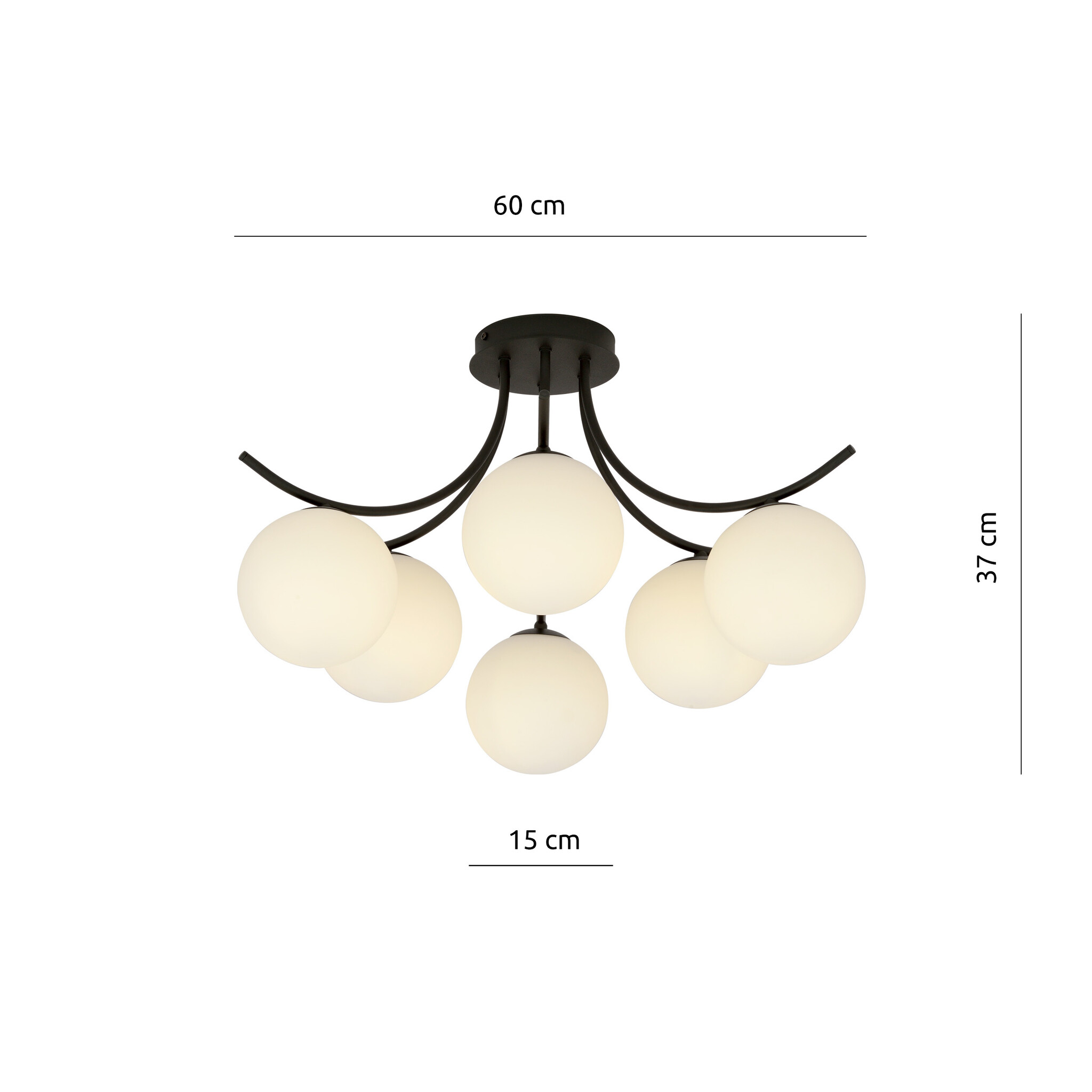 Specificaties Kopenhagen zwart met 6 witte bollen glas E14: