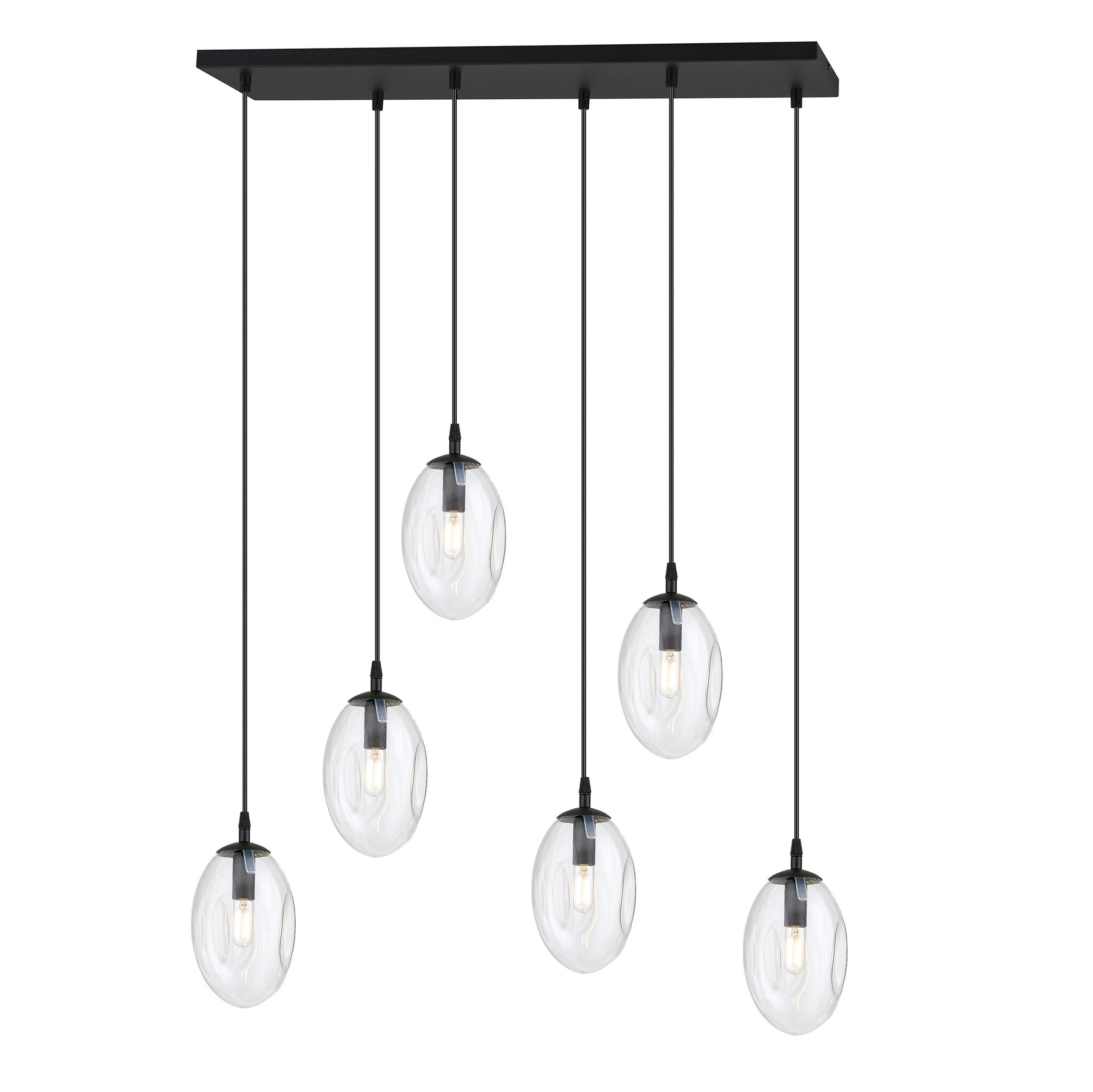 Lange 6 licht zwarte pendel met 6 glazen geblazen transparant glas