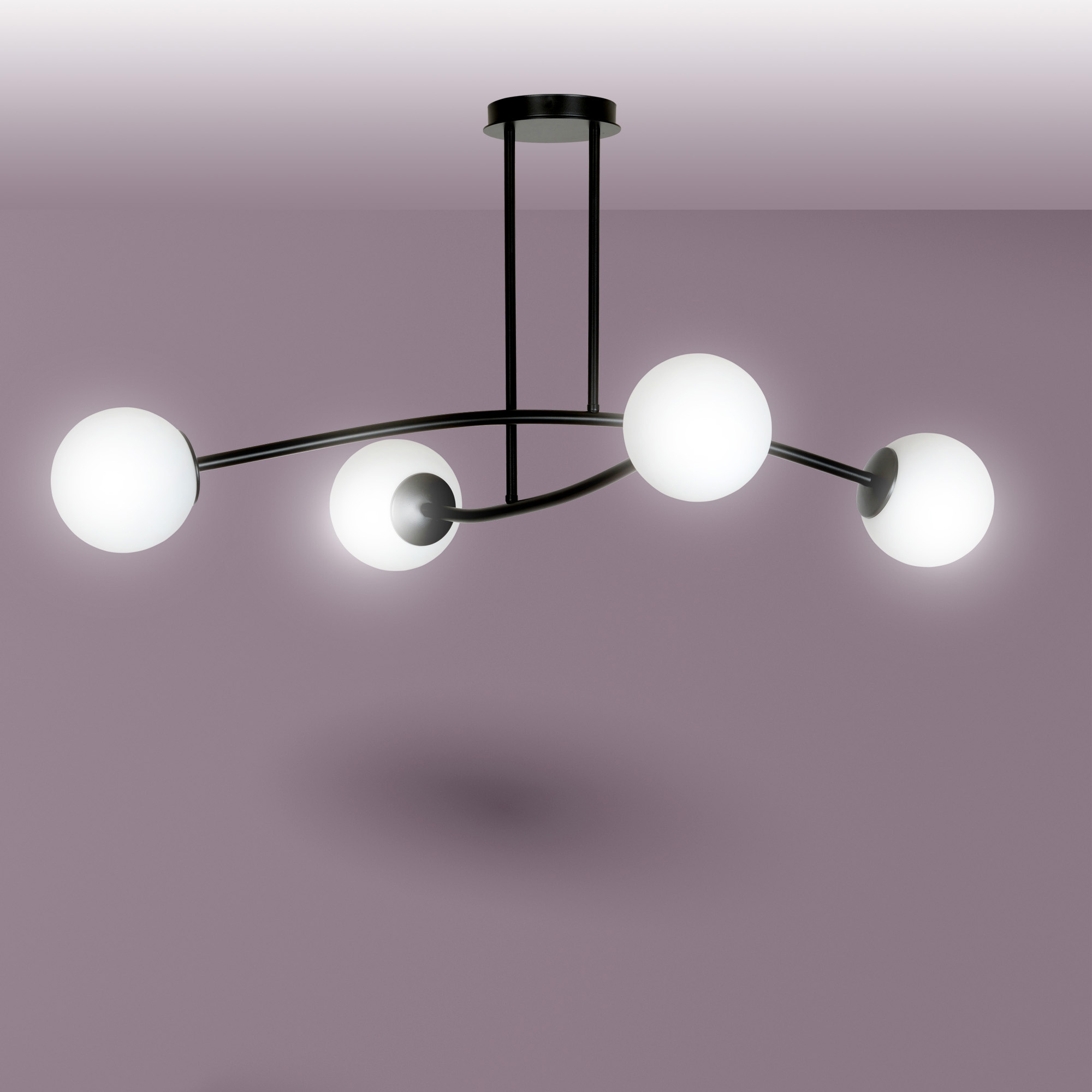 Lemvig eenvoudige pendellamp zwart met wit glas 4 lampen E14