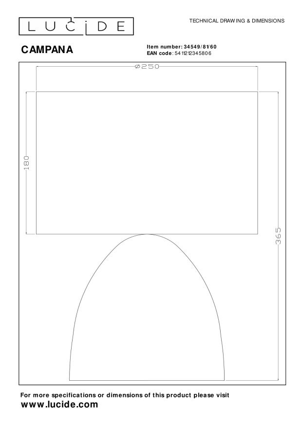 Specificaties Lucide CAMPANA - Tafellamp - 1xE27 - Transparant: