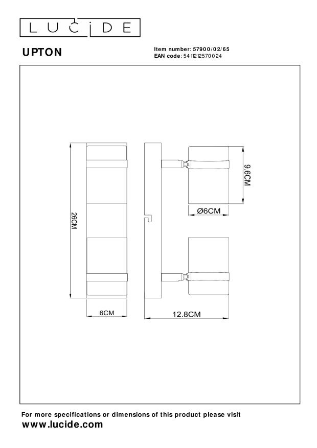 Specificaties Lucide UPTON - Plafondspot - 2xGU10 - Fumé:
